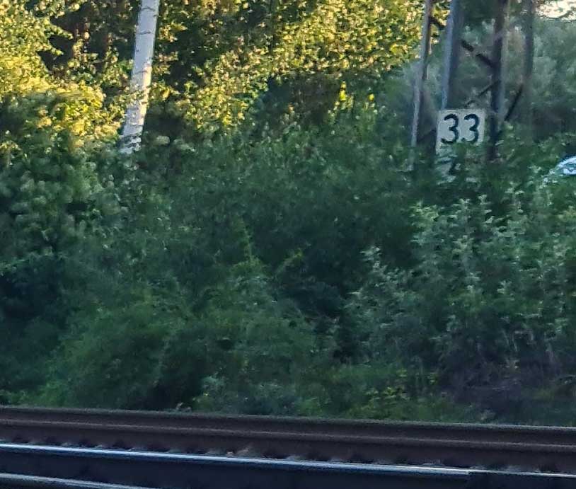 km 1,2 (rechts am Oberleitungsmast) gehört zur Strecke