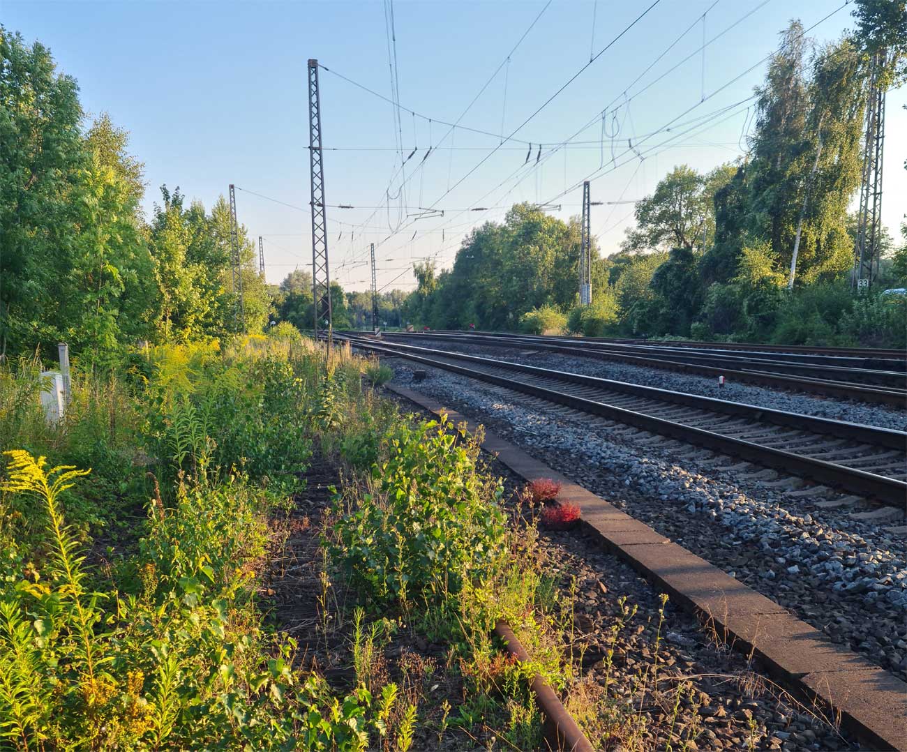 Rechts das Gleis gehört zur Strecke Hannover-Wülfel 0,0 - Abzw Waldheim 2,85 (1754) [etwa km 1,4]