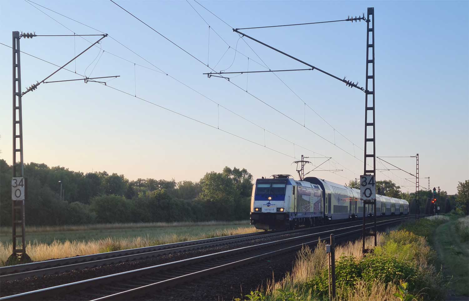 Der Zug selber befindet sich am km 27,6 auf dem Gegenrichtungsgleis der Strecke (Wunstorf 0,0) - Abzw Hannover-Waldhausen 26,64 - Hannover-Wülfel 29,59 (1753)