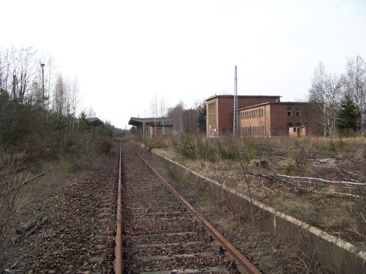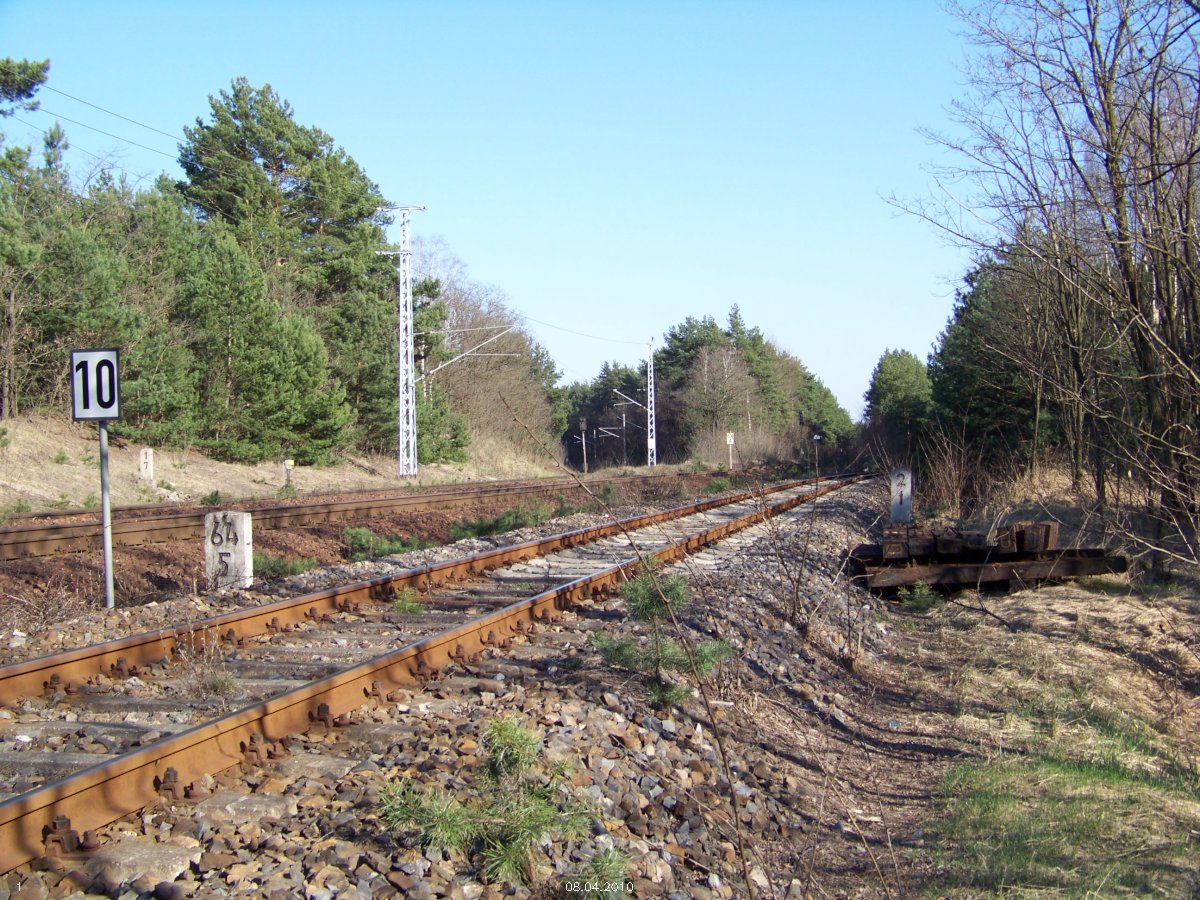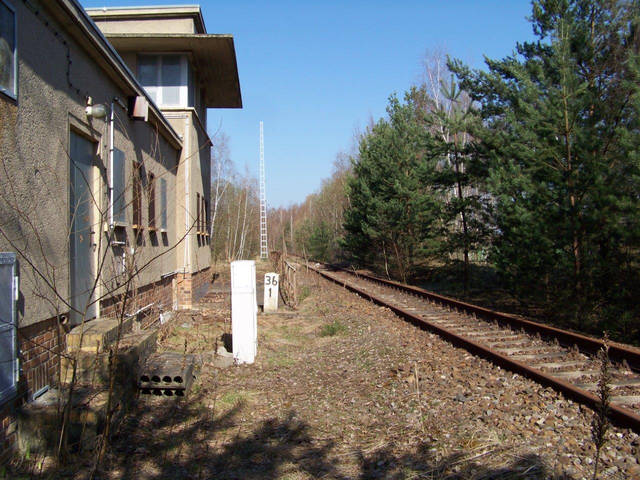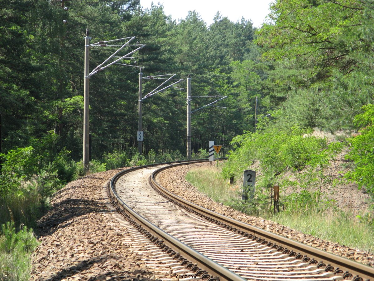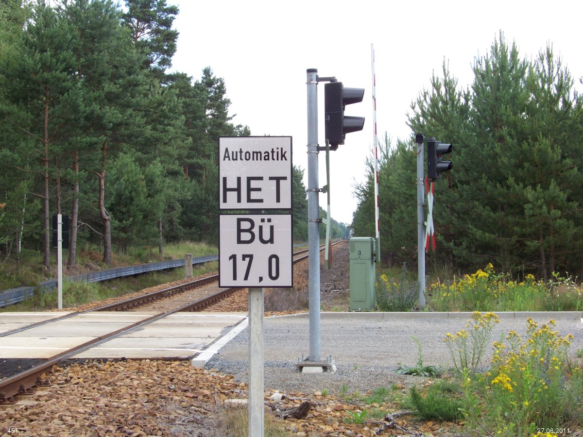 | km 53,00 der Strecke Großenhain Cottb. Bf 0,0 - Senftenberg 45,29 - Cottbus 80,00 - Peitz 94,81 - Streckenunterbrechung - Grunow (Niederlausitz) 129,27 - Frankfurt (Oder) 152,78 |