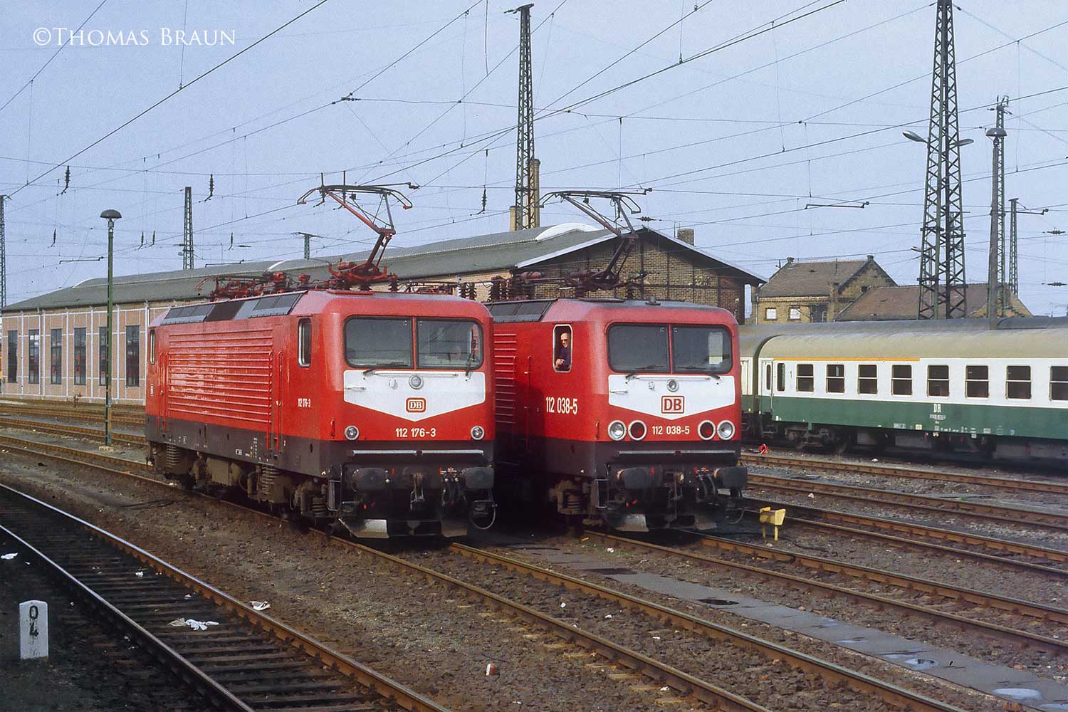 km 0,4 (Gegenrichtungsgleis) in Leipzig Hbf - 112 176 und 112 038