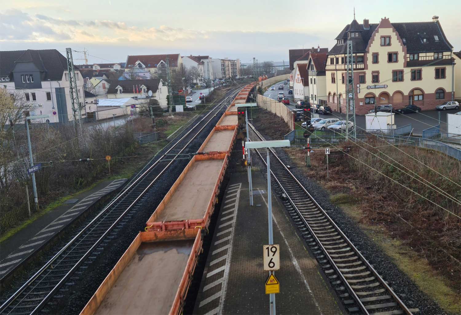 | km 61,78 der Strecke (Mannheim Hbf 0,0) - Goddelau-Erfelden 45,71 (Abzw. von Strecke 231) - Abzw. Bergschneise 58,6 - Darmstadt Hbf 61,78 | ||
