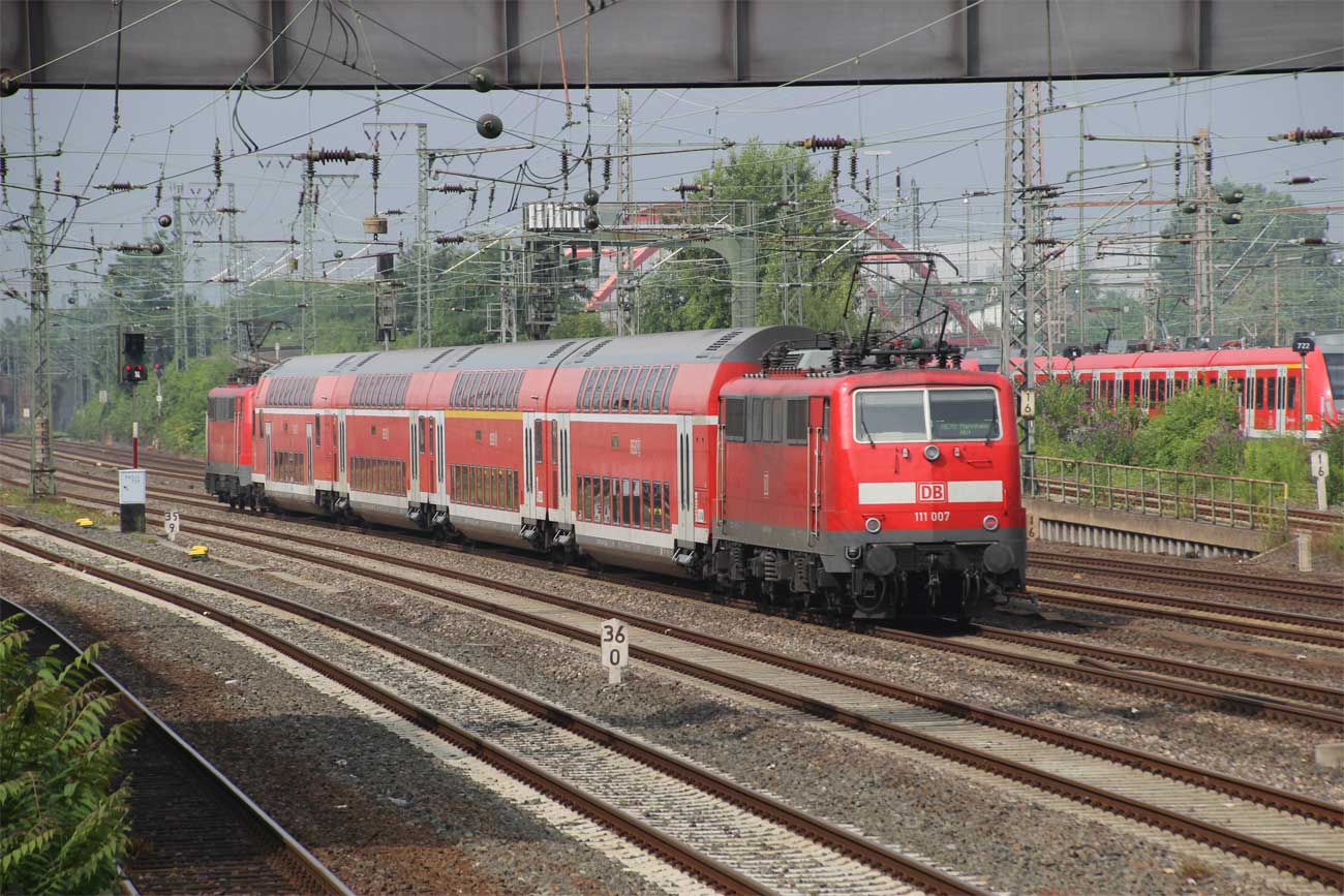 km 32,8 (links neben dem Zug) in Frankfurt (Main)-Niederrad - Blick Richtung Frankfurt (Main) Hbf