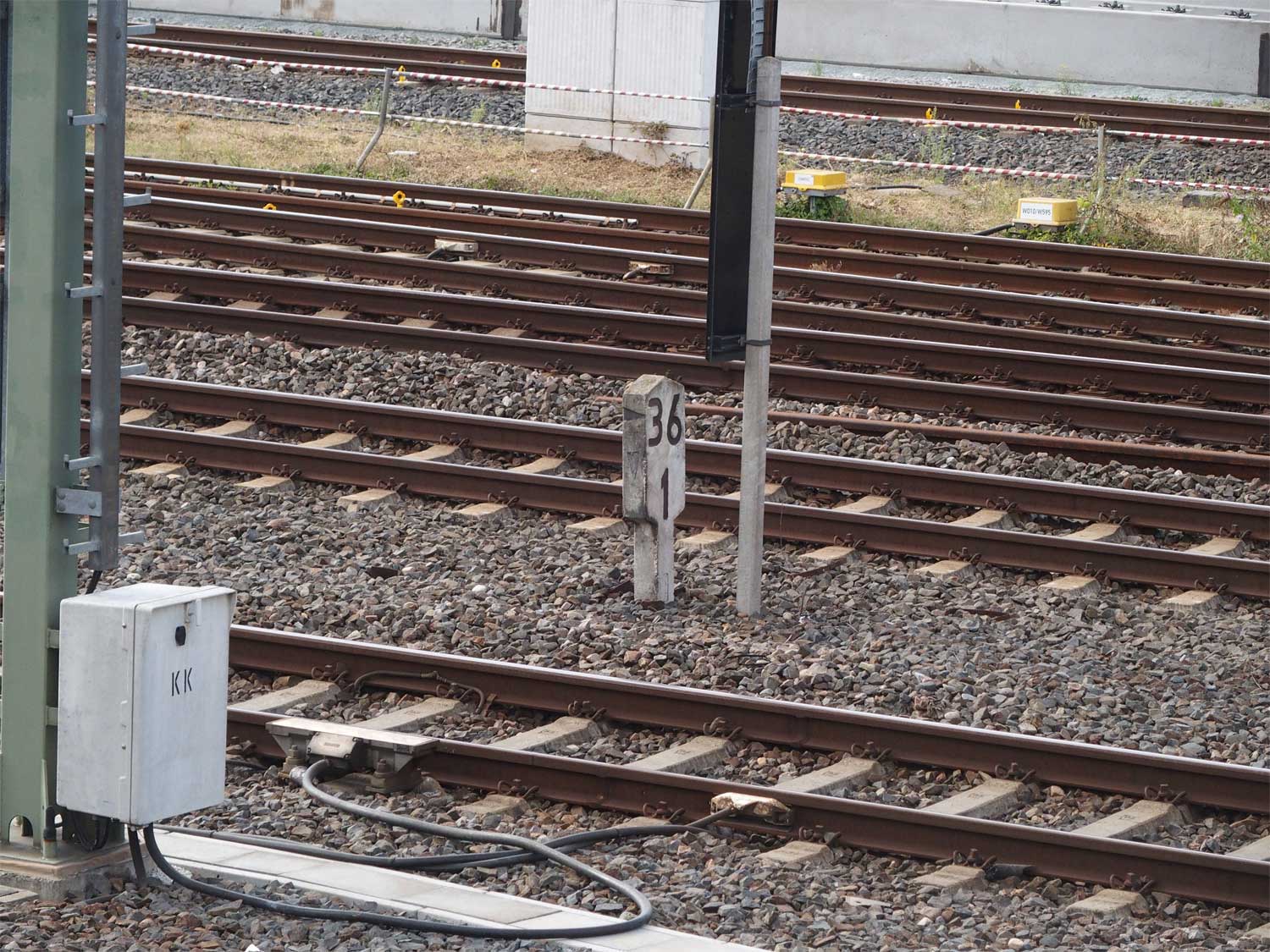 km 1,4 (Tafel und Stein rechts) gehören zur Strecke Frankfurt (Main) Hbf 0,0 - Niedernhausen (Taunus) 31,89 - Eschhofen 66,47 (3610)