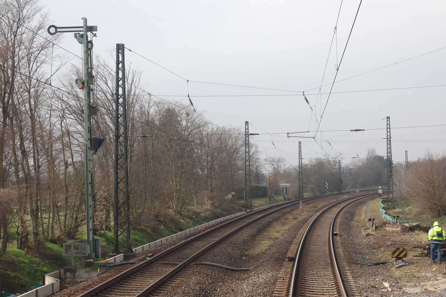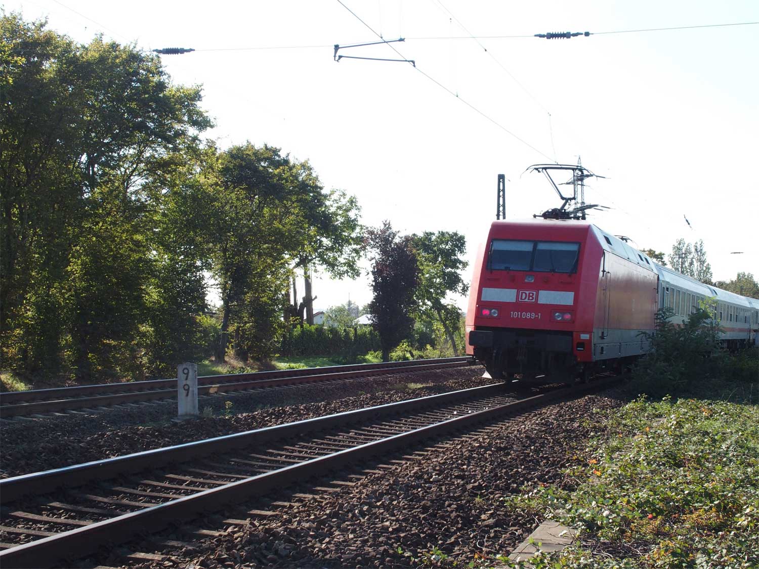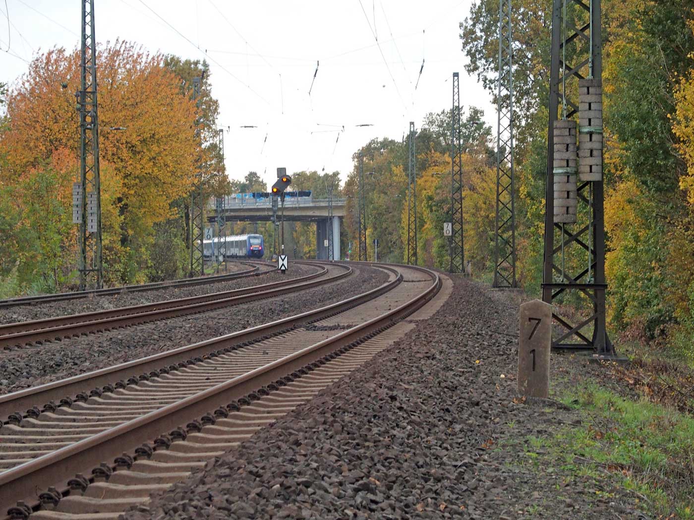 km 3,6 (versteckt hinter dem Oberleitungsmast) gehört zur Strecke