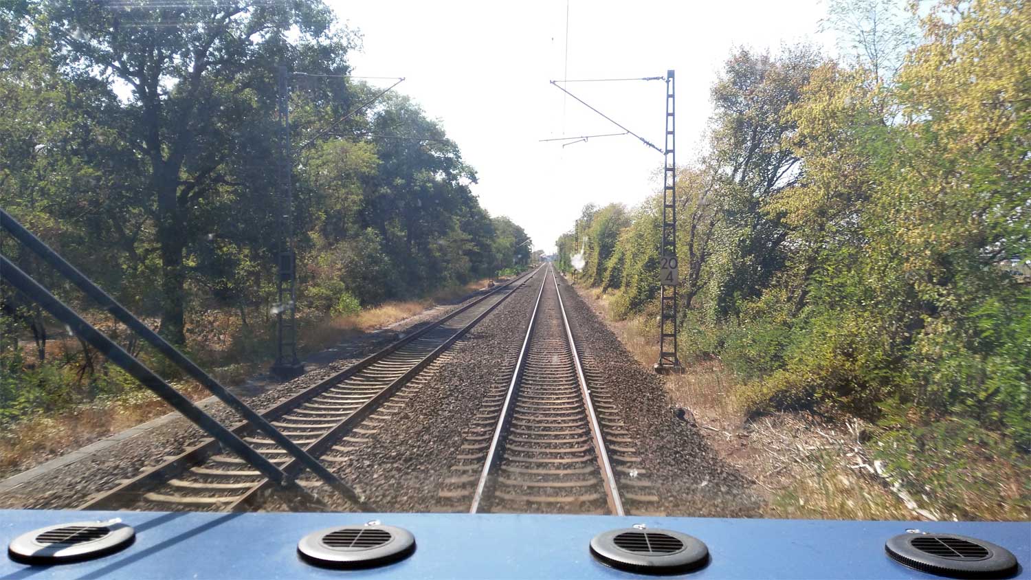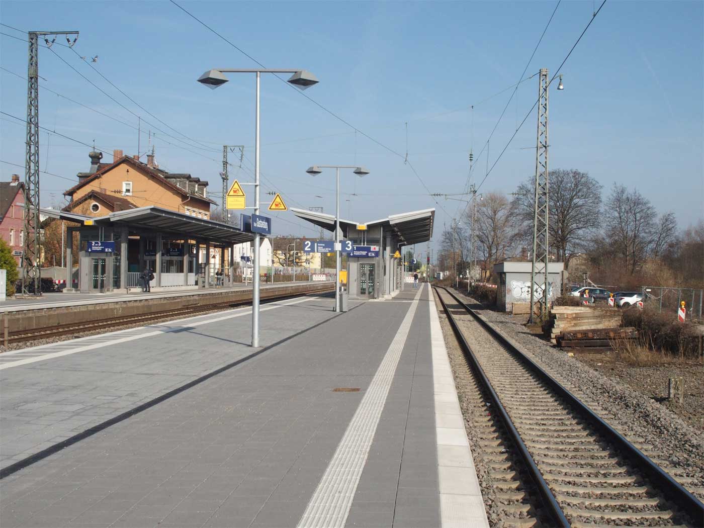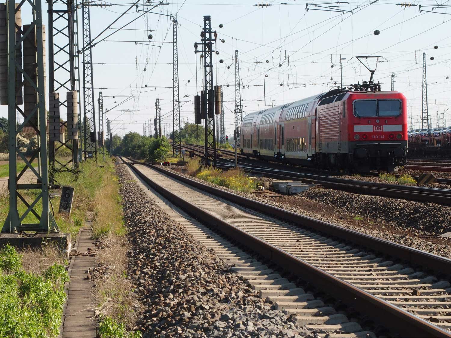 km 3,6 (versteckt hinter dem Oberleitungsmast) gehört zur Strecke