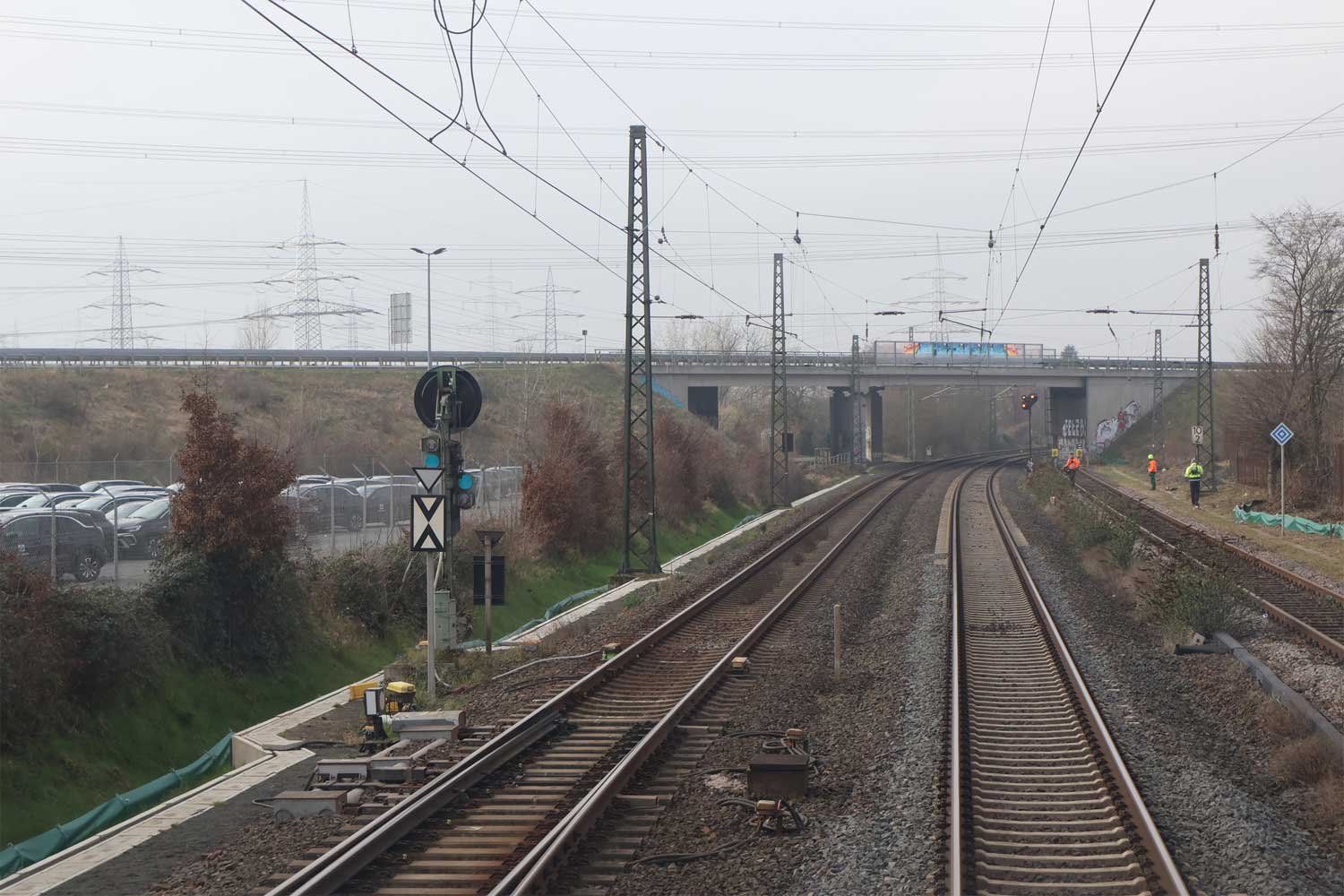 Ganz rechts das Gleis der Strecke