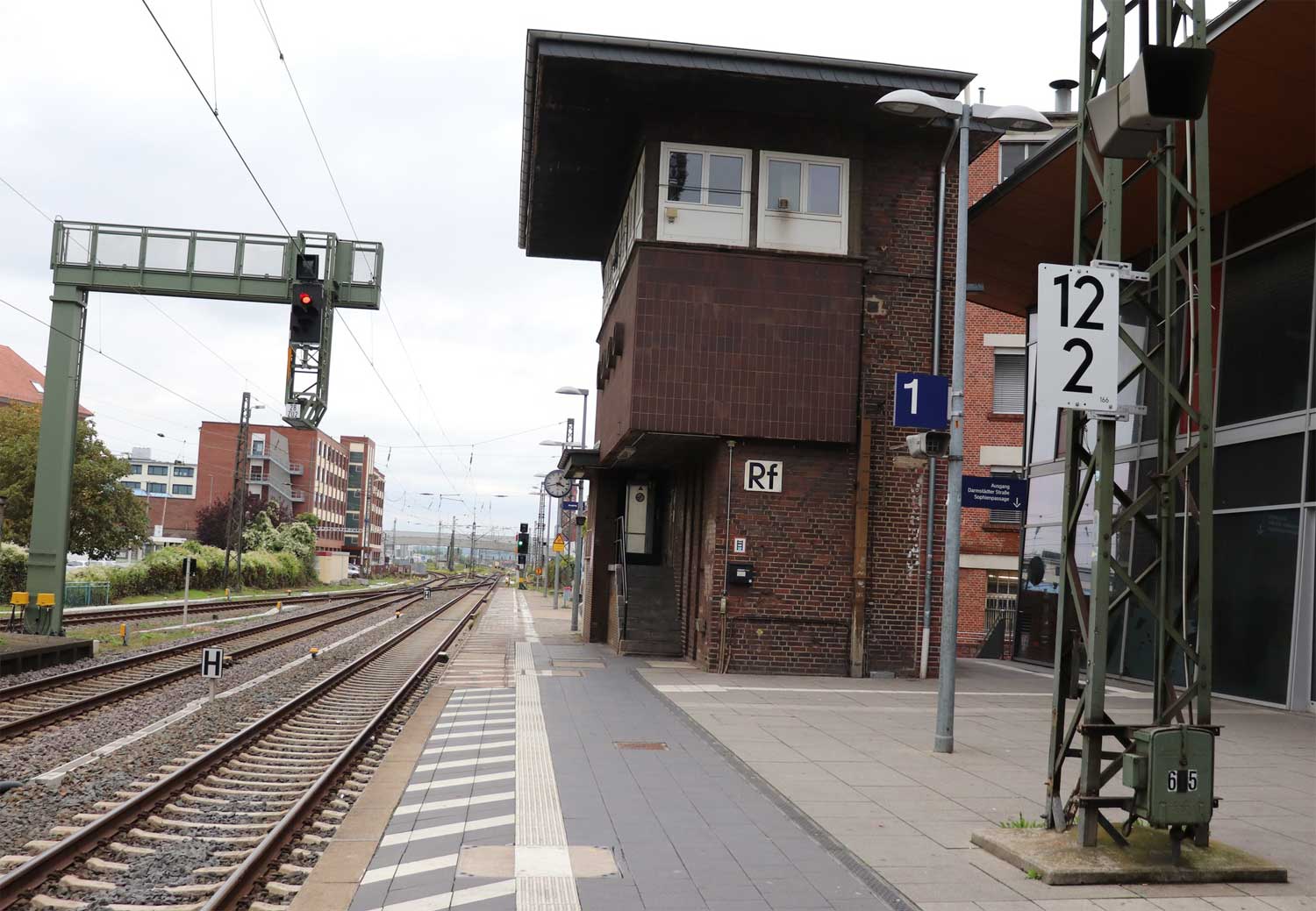 km 1,4 (Tafel links) gehört zur Strecke Frankfurt (Main) Hbf 0,0 - Abzw Mainzer Landstraße 2,98 - Abzw bei Frankfurt (Main)-Rödelheim (Niddabrücke) 6,46 (3613)