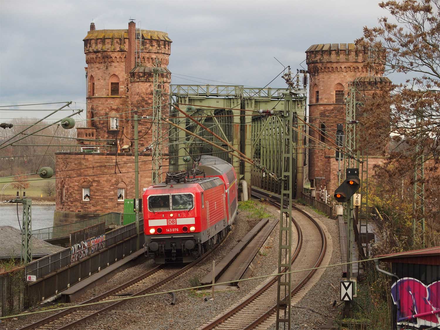 | km 49,09 der Strecke Landesgrenze Pfalz/Hessen 0,0 - Worms Hbf 3,21 - Mainz Hbf 49,09 [alte Kilometrierung] | ||