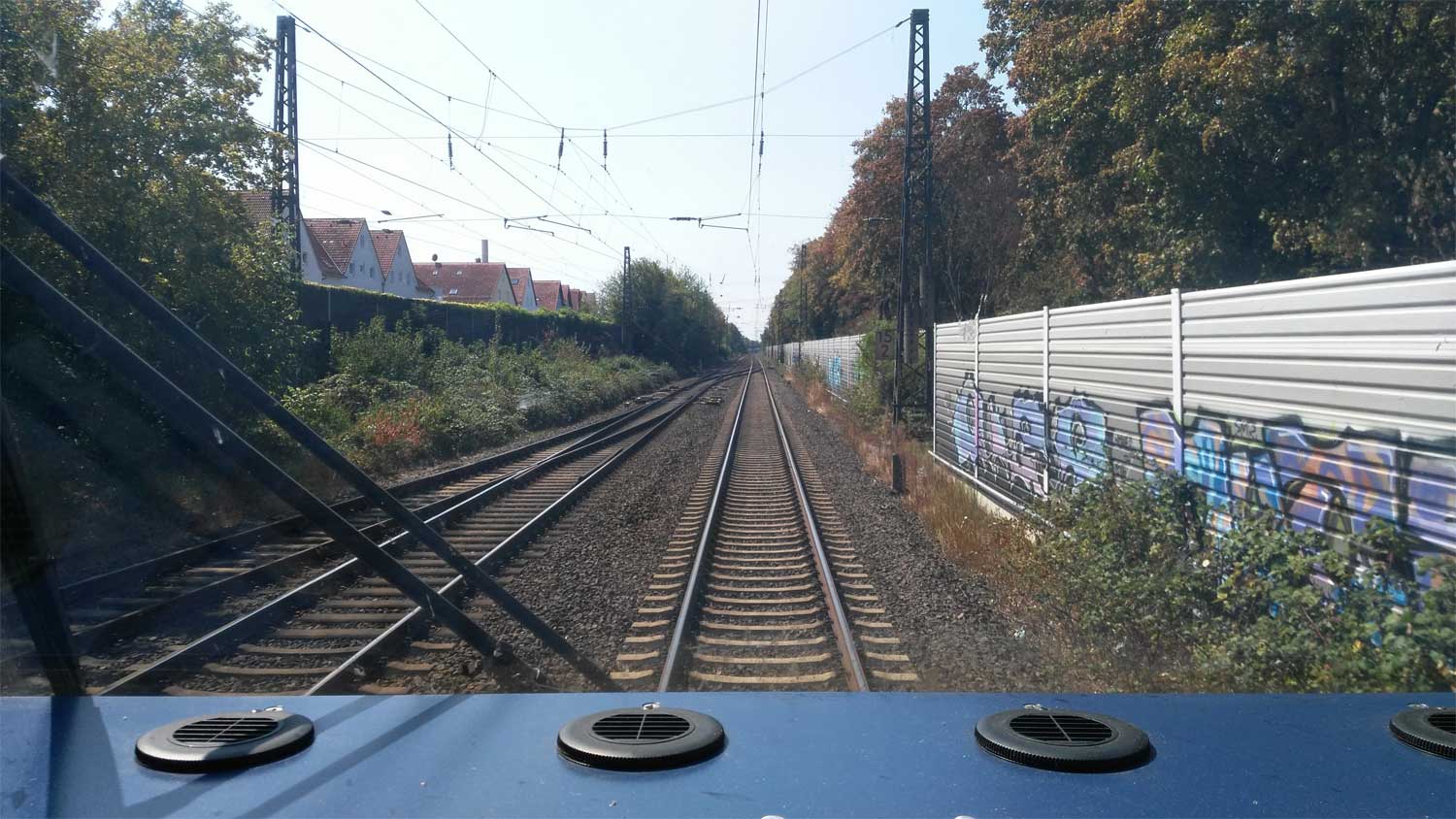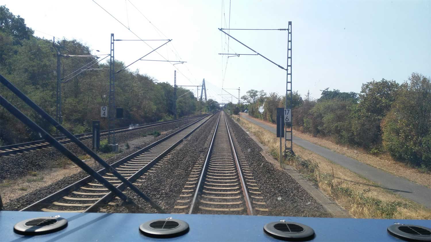 km 31,5 in Frankfurt (M)-Sportfeld - Blick Richtung Frankfurt (Main) Hbf