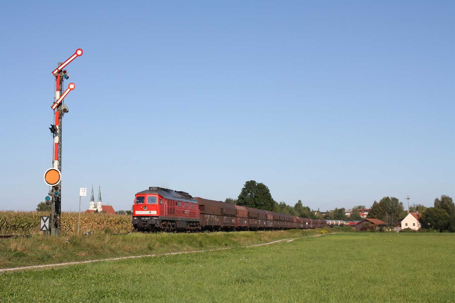 km 13,2 zwischen Heiligenstatt (Oberbay) und Altötting - 232 528 als Schlusslok