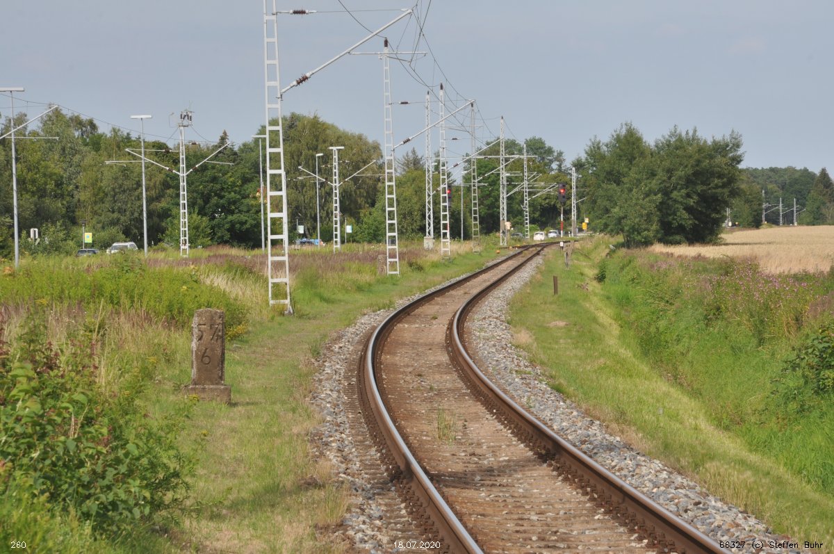 km 65,6 (Tafel und Stein) zwischen Bentwisch und Abzw Riekdahl - 142 150 und 142 118