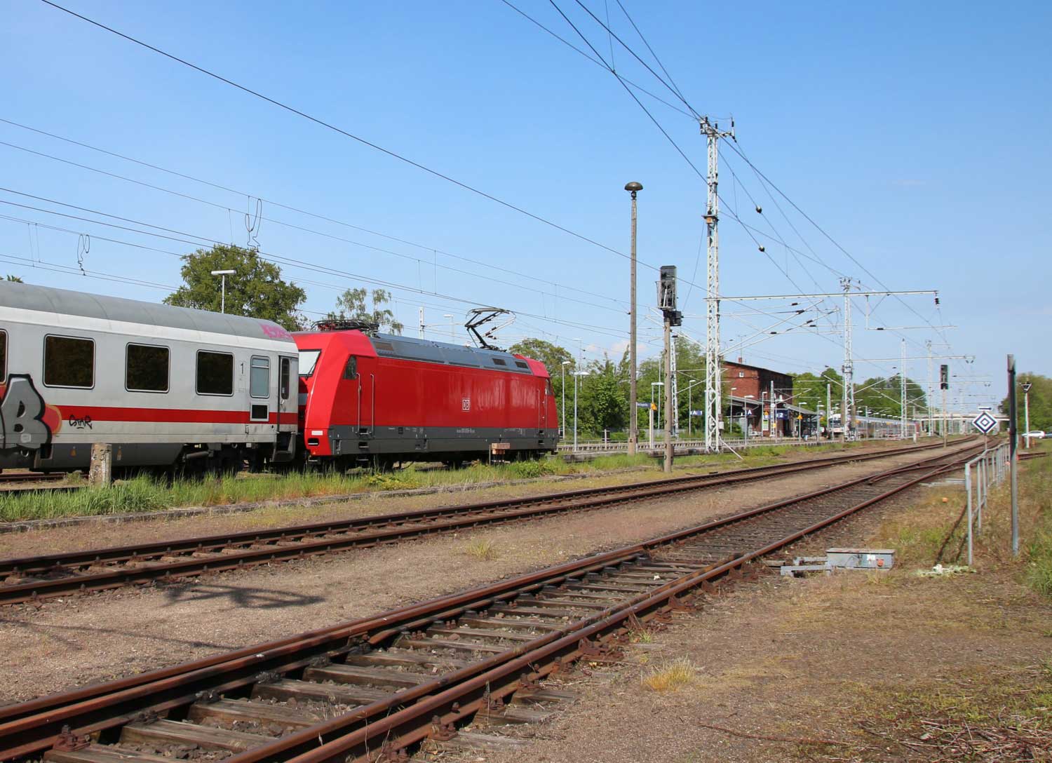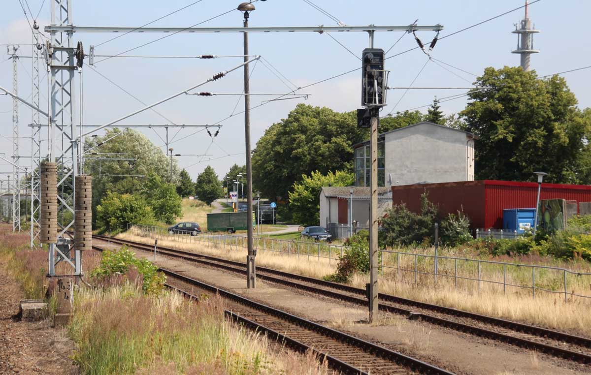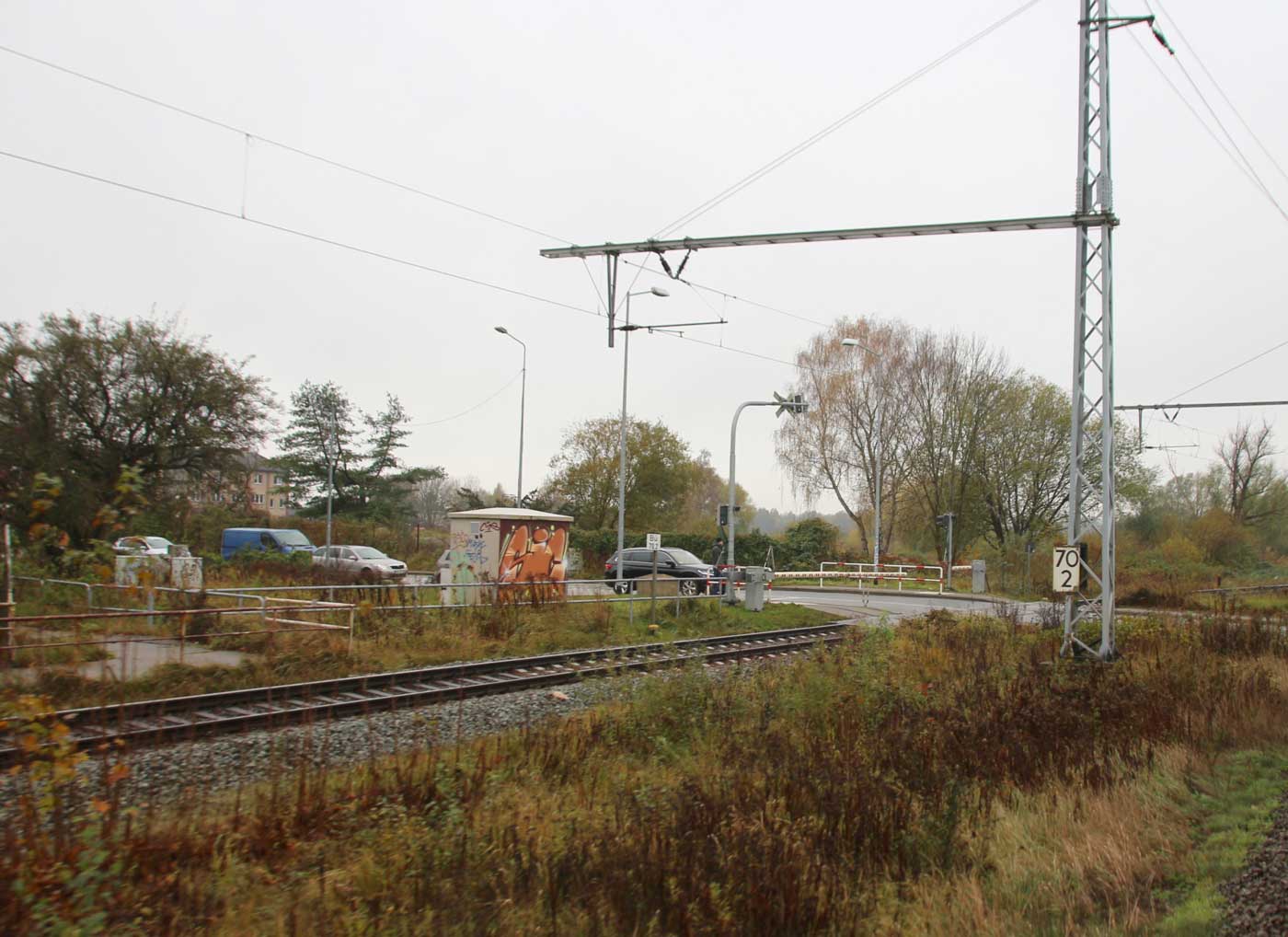 Im Hintergrund links die Strecke Abzw Riekdahl, W 1 km 0,87 - Rostock Seehafen Nord km 9,228 (6443)
