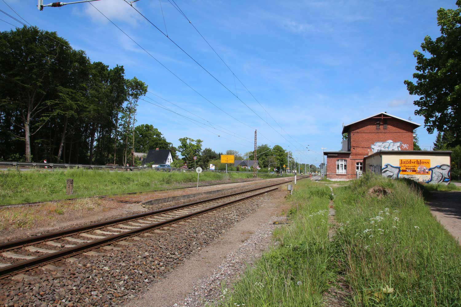 | km 223,07 der Strecke Berlin Eberswalder Straße 0,01 - Oranienburg 27,41 - Löwenberg (Mark) 44,25 - Neustrelitz 98,53 -Neubrandenburg 133,69 - Stralsund 222,64 - Saßnitz 272,72 - Saßnitz Hafen 274,46 | ||