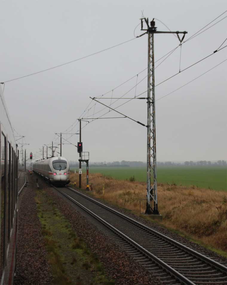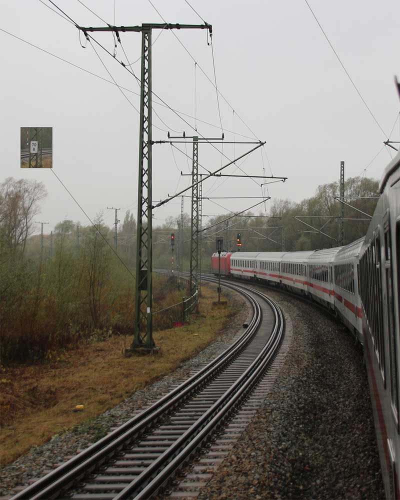 km 70,8 zwischen Rostock-Kassebohm und Abzw Rostock Warnowbrücke West - Blick Richtung Stralsund