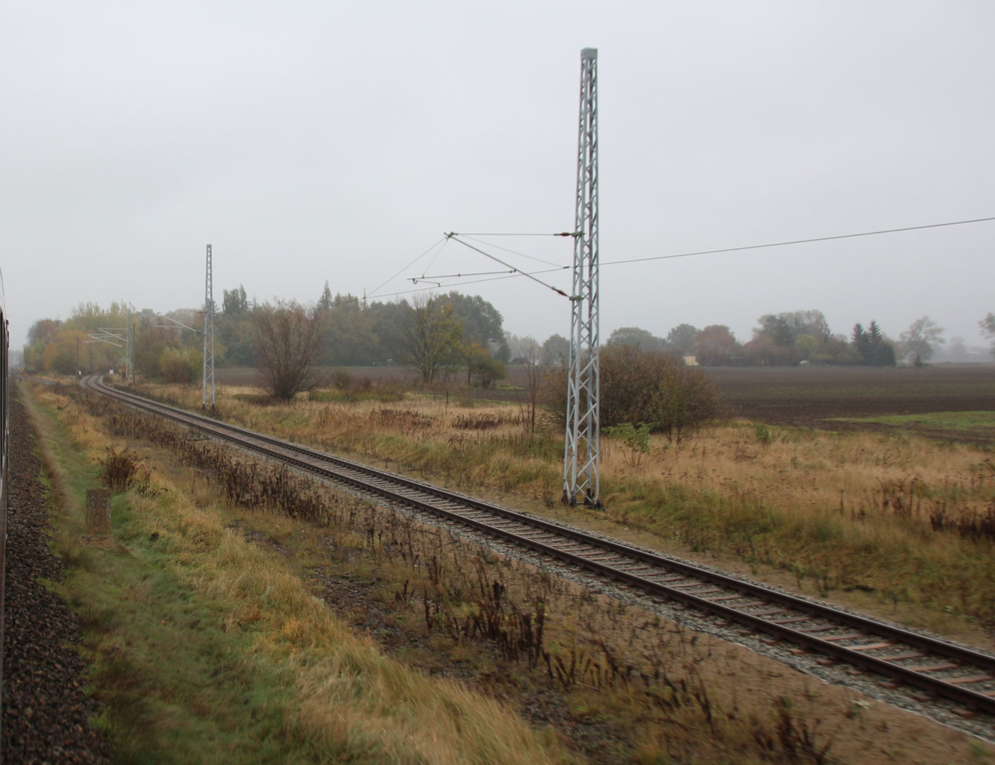km 70,8 zwischen Rostock-Kassebohm und Abzw Rostock Warnowbrücke West - Blick Richtung Rostock