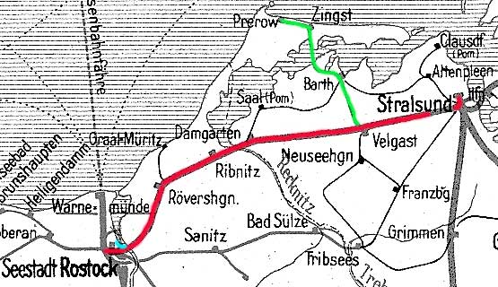 | Stralsund | 0,30 | km 222,64 der Strecke Berlin Nordbf -0,02 - Berlin-Schönholz 3,85 - Löwenberg Reichsb (Mark) 44,25 - Neustrelitz Reichsb 98,53 - Neubrandenburg 133,73 - Stralsund 222,64 - Saßnitz 272,72 - Saßnitz Hafen 274,46 |