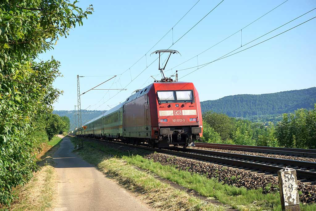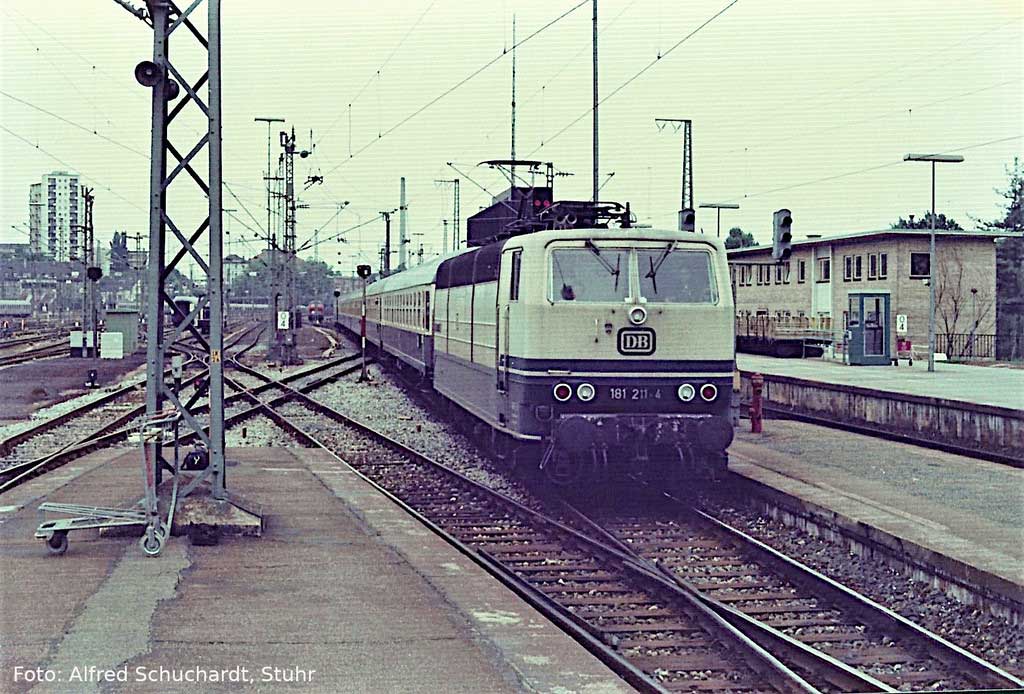 (Stuttgart Hbf 0,0) - Ulm Hbf 93,98 - Rbd/BD-Grenze km 94,950 (= km 85,001 - Neu-Ulm 83,77 - Augsburg Hbf 0,0)