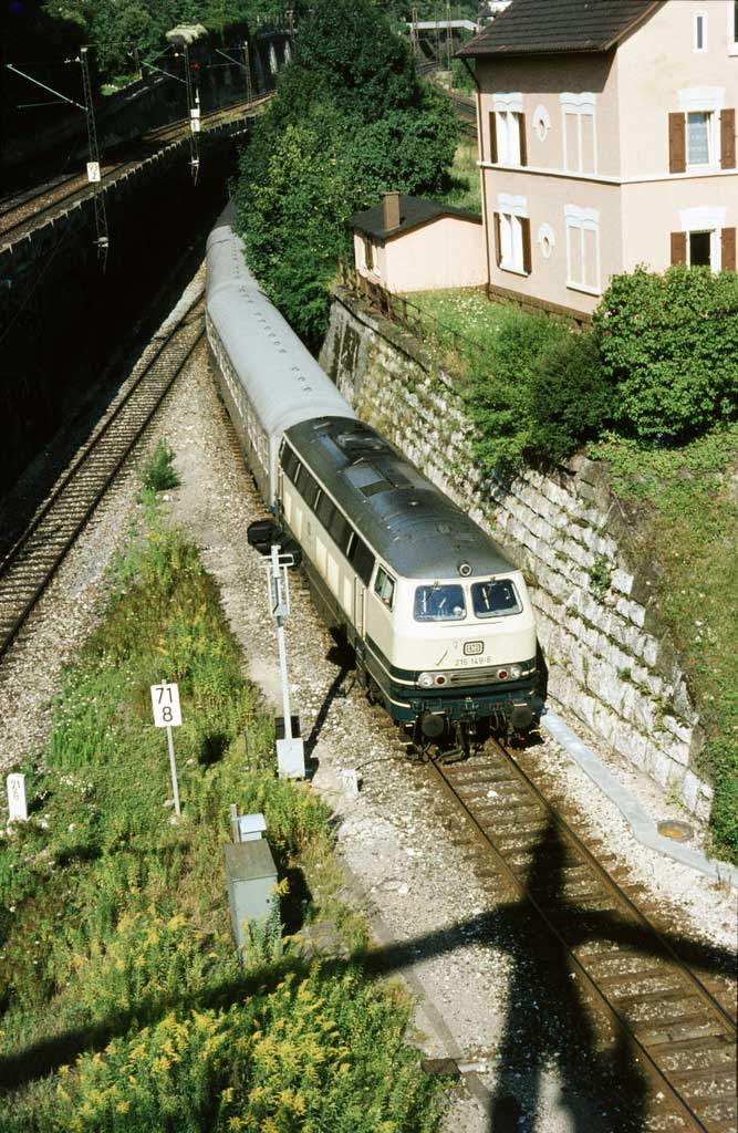 Unten bei km 71,8 der Strecke Aalen - Ulm Hbf am Abzw Ulm Kienlesberg mit 215 149 mit E 3515