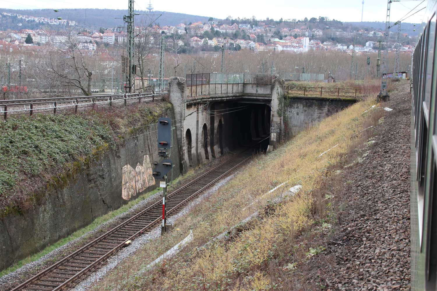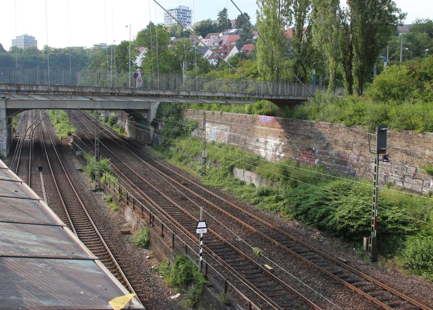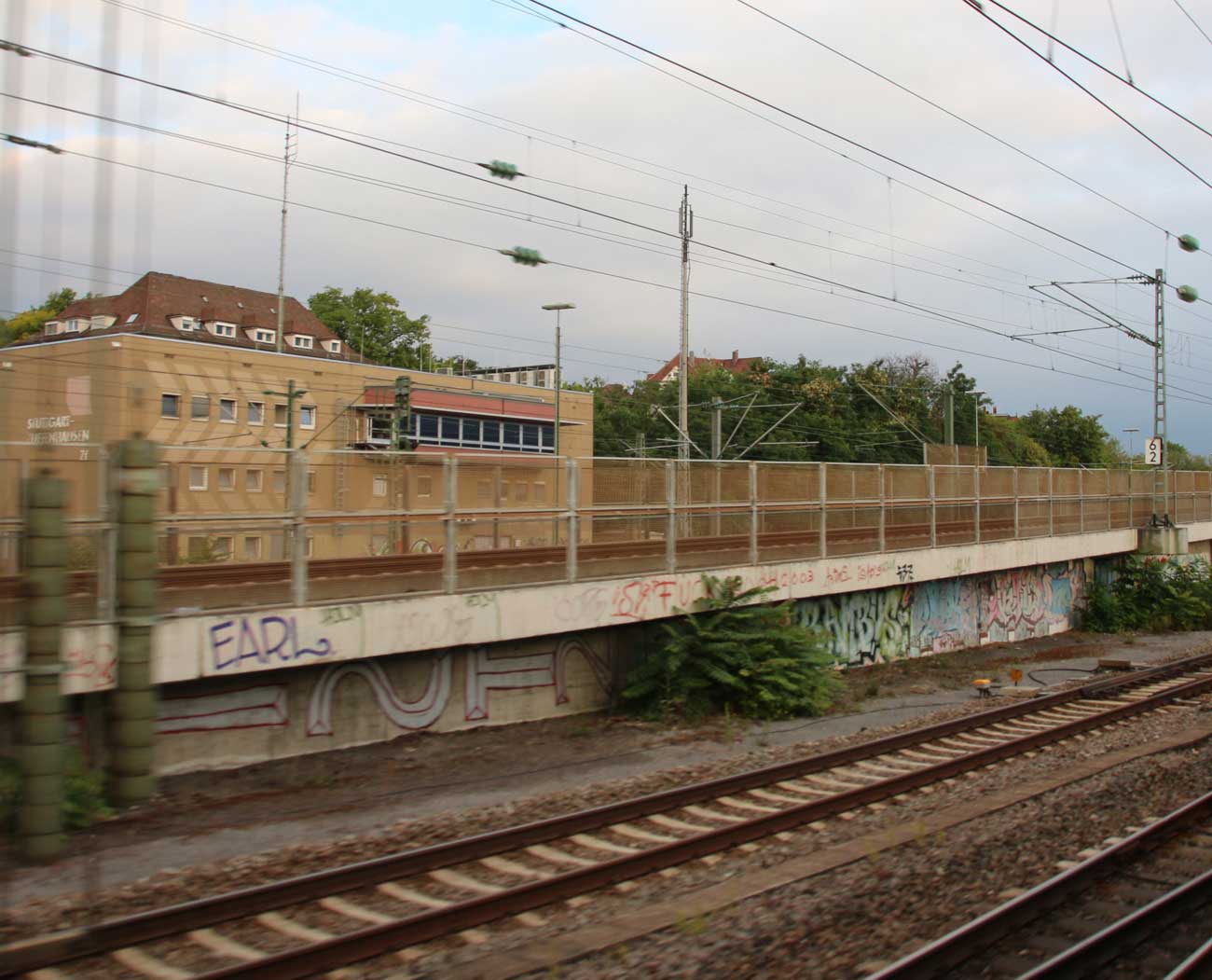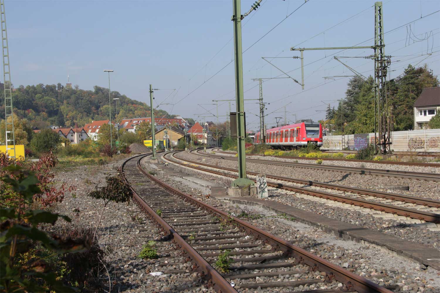 Rechts hinter dem Wall die Strecke Stuttgart-Untertürkheim Pbf 0,0 - Kornwestheim Pbf 11,47 (4720)