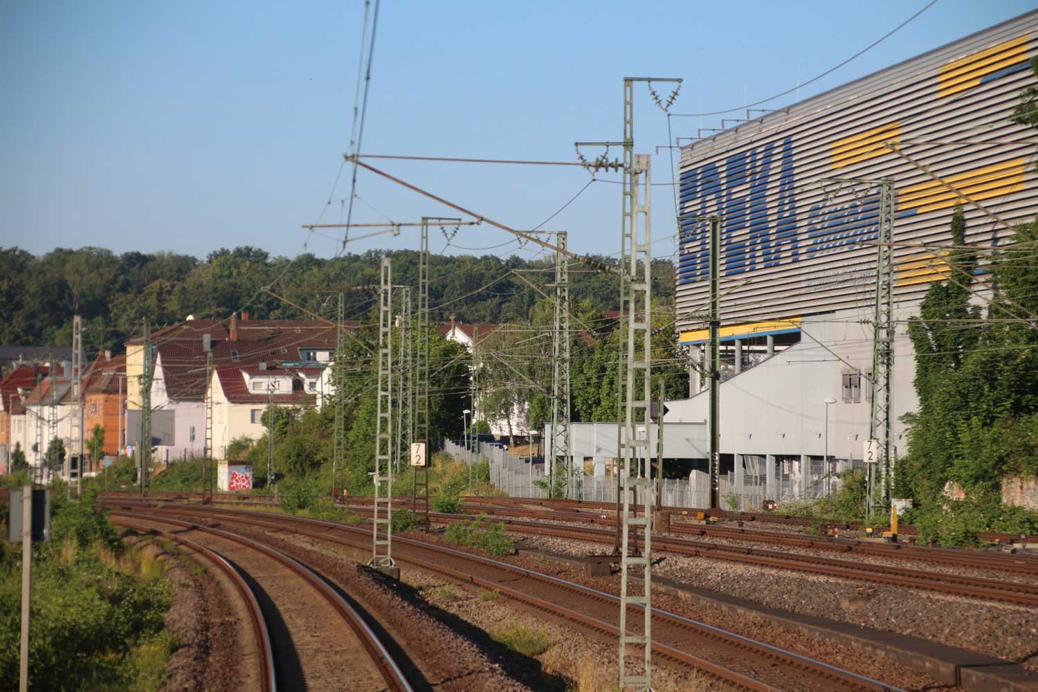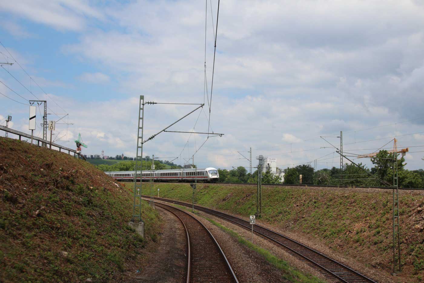 Von rechts kommend das Richtungsgleis der NBS Mannheim - Stuttgart