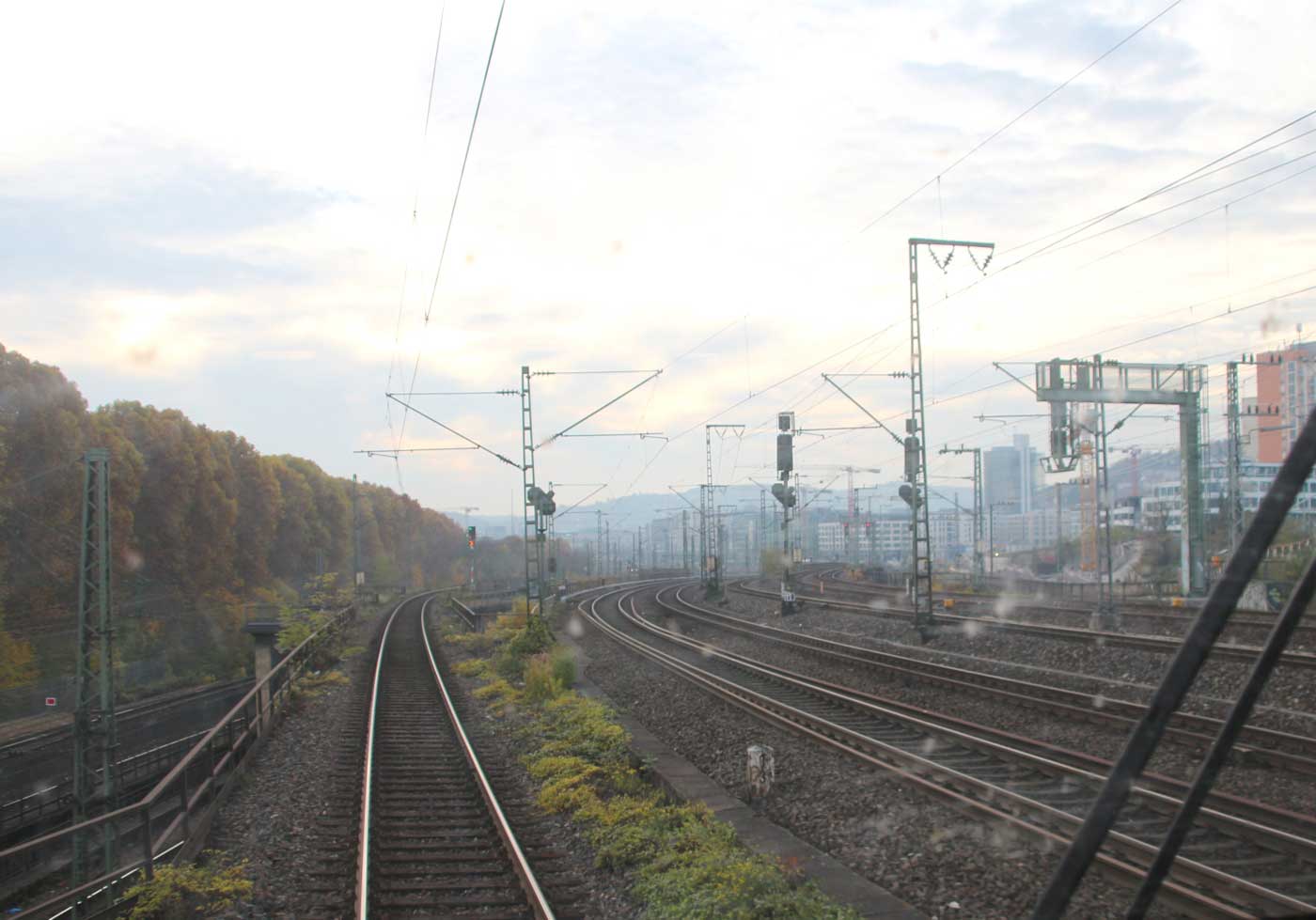 Von links kommend das Richtungsgleis der NBS Mannheim - Stuttgart