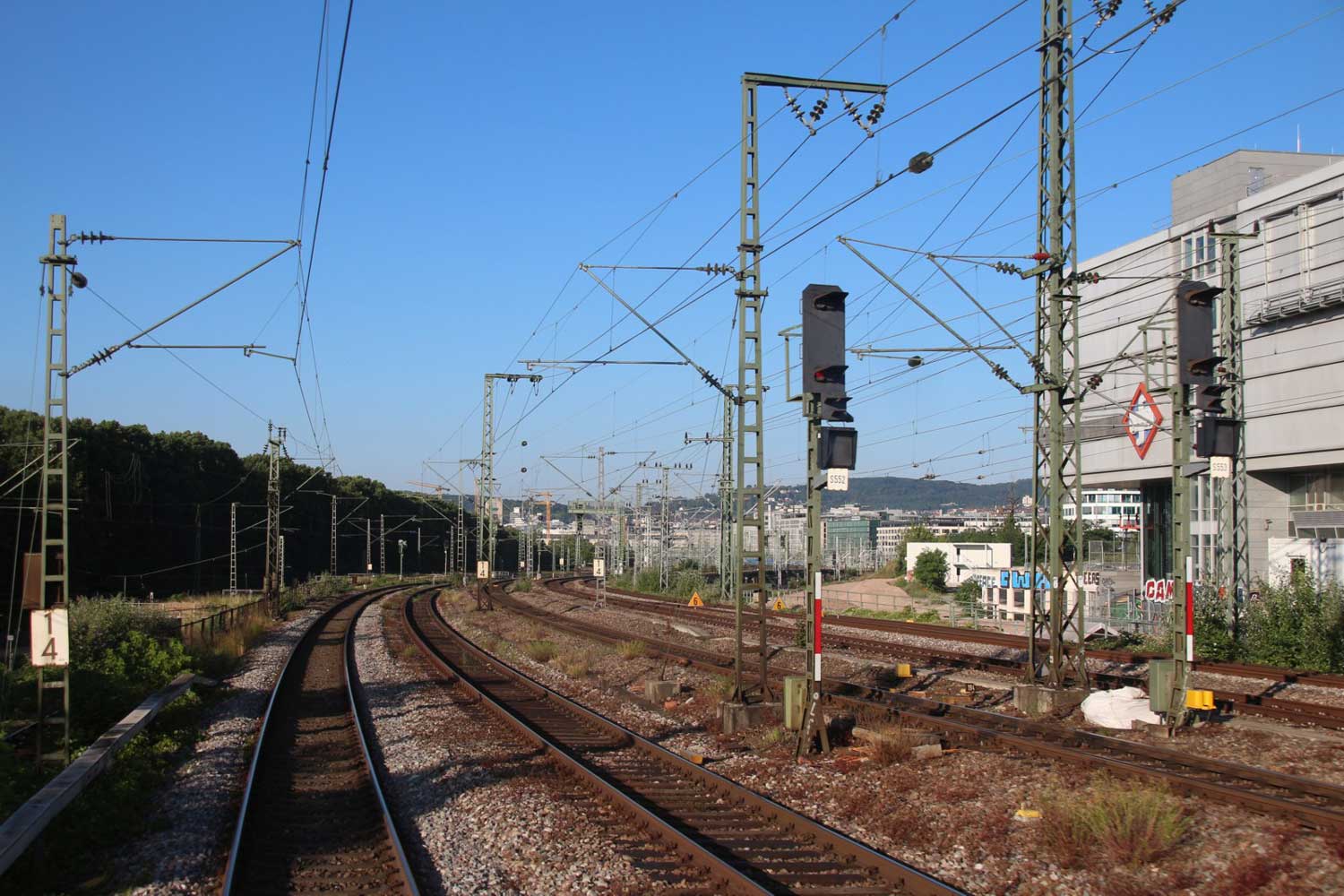 km 9,4 (links Richtungsgleis), km 9,4 (rechts Gegenrichtungsgleis) - Blick Richtung Stuttgart Hbf