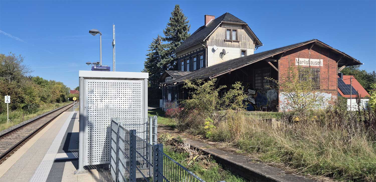 km 0,3 (rechts im Gebüsch) in Arnstadt Hbf