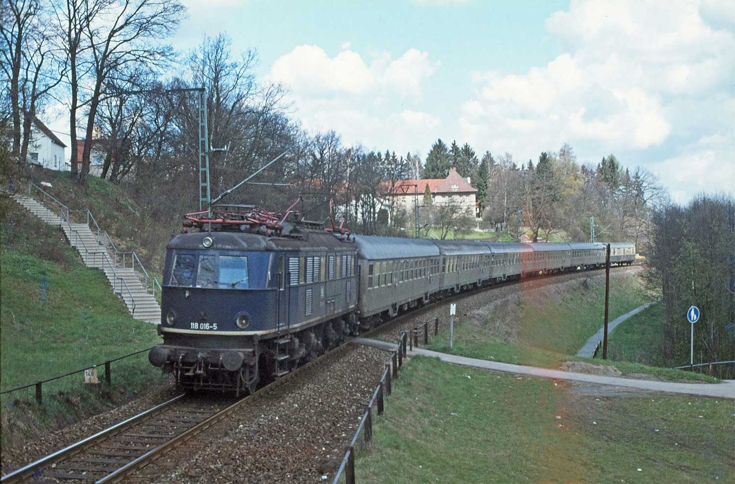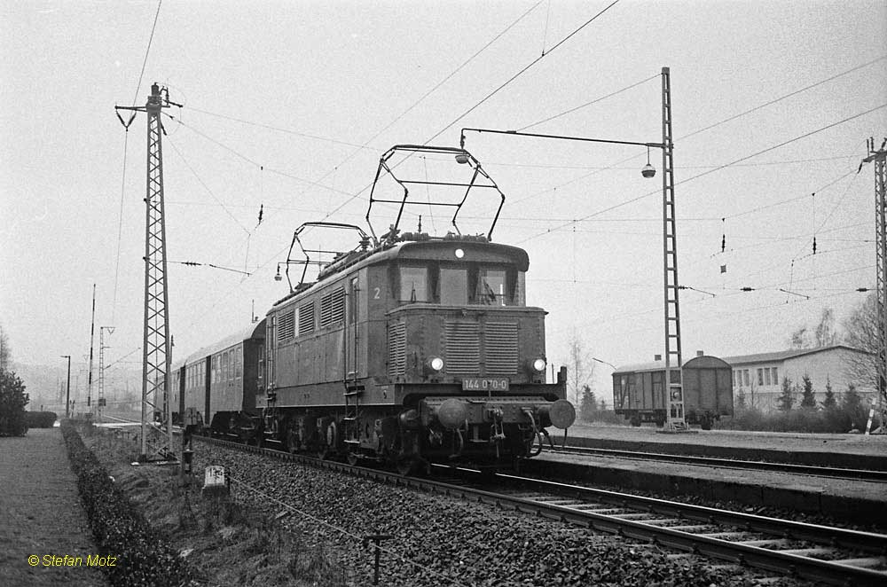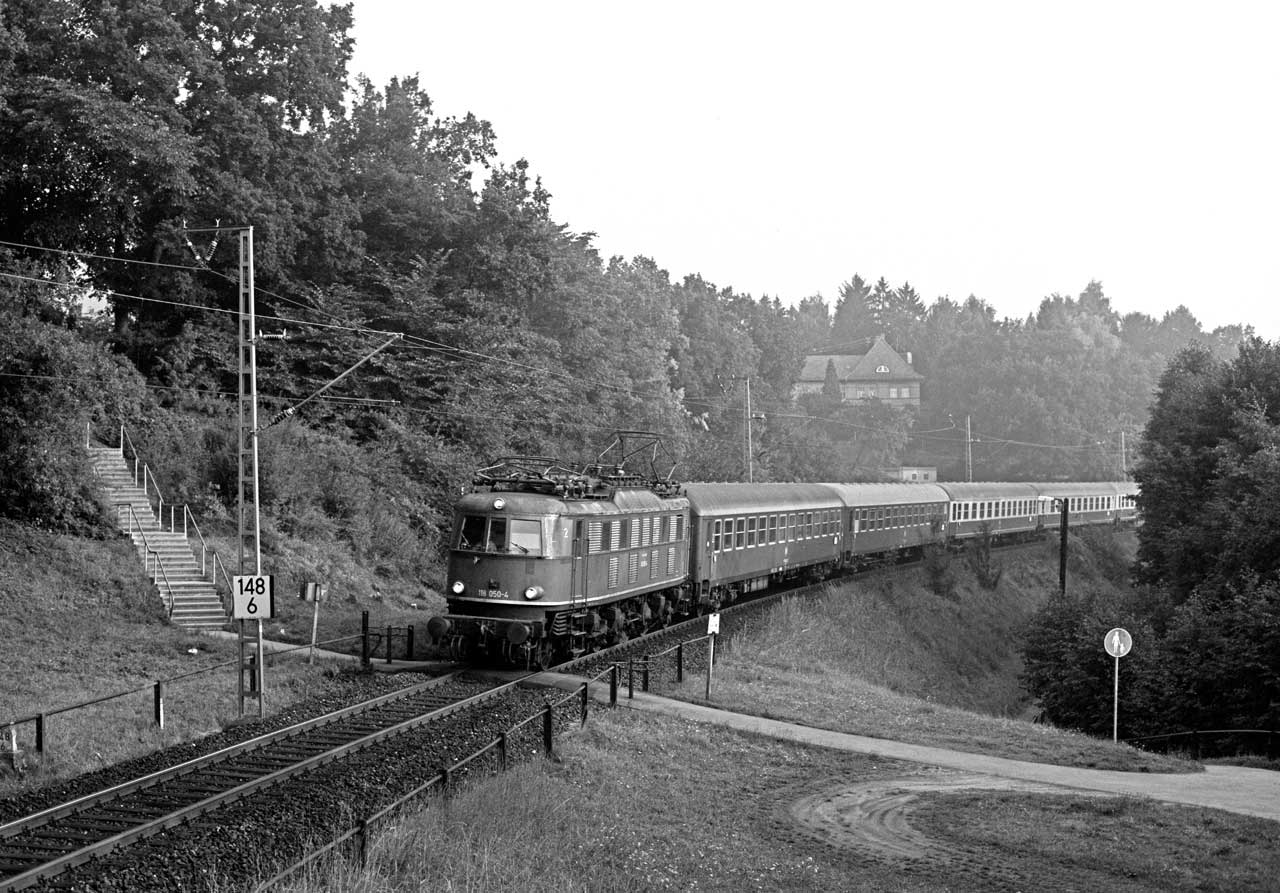 E 531 mit 01 128 verlässt am 05.06.1968 den Bf Lichtenfels in Richtung Hof