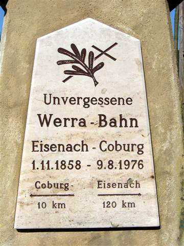Eisenach 0,0 - Meiningen 60,69 - Eisfeld 108,26 - Coburg 130,11 - Lichtenfels 150,99 (1929)