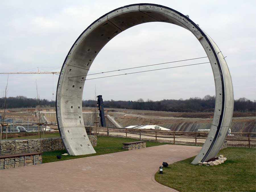Im Hintergrund der Einschnitt für das zukünftige Portal.