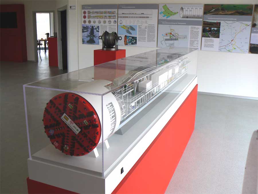 sowie mit Modellen die gesamte Neubaustrecke und die Bauarbeiten am