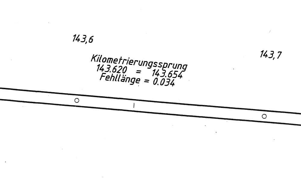km 143,620 = km 143,654 (Fehllänge 34 m)