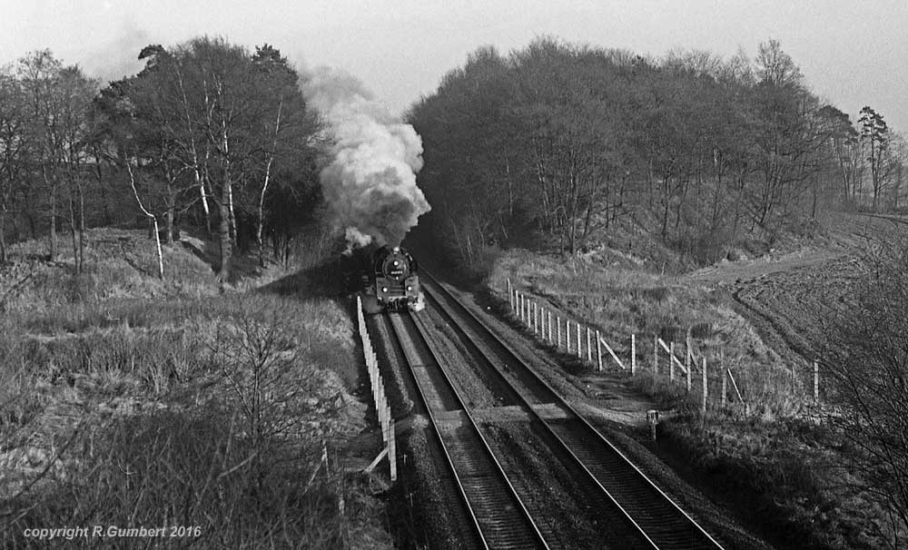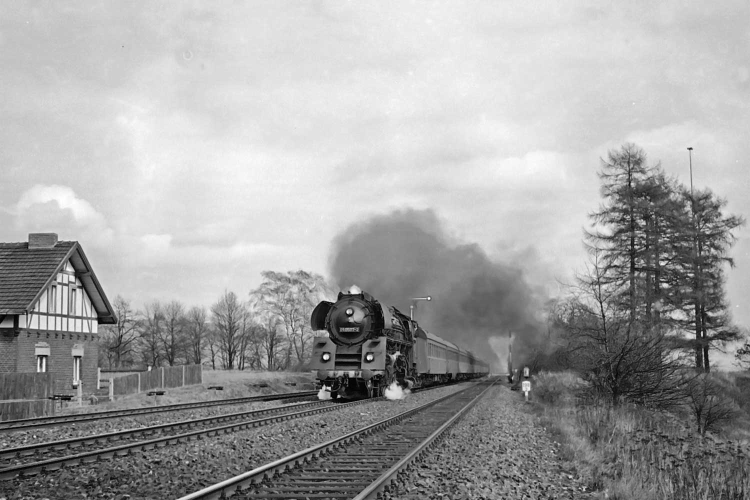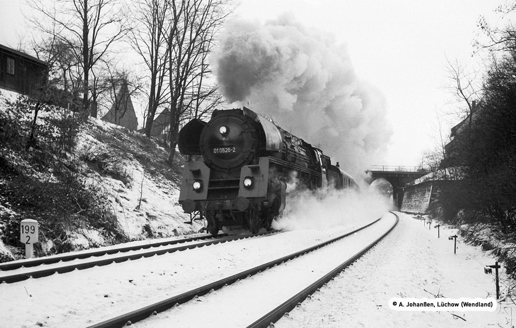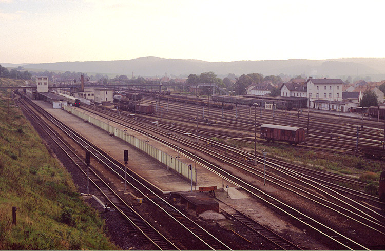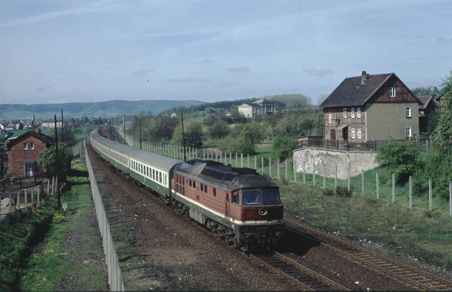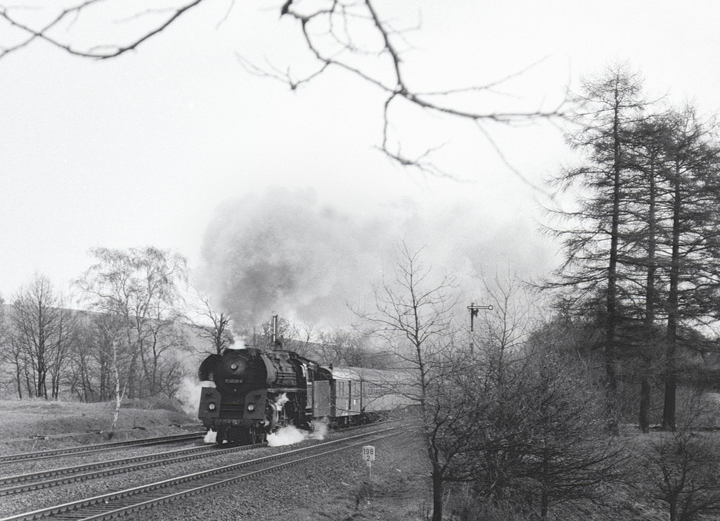 Am Sonntag (30.07.1972) blieb mir das schlechte Wetter treu, was umso schmerzlicher war, als der D 1100 (Stralsund –) Erfurt - Bebra (an 9:40 Uhr) (- D 1152 Frankfurt [Main]) mit Vorspann – 01 0528 vor 01 0501 verkehrte.