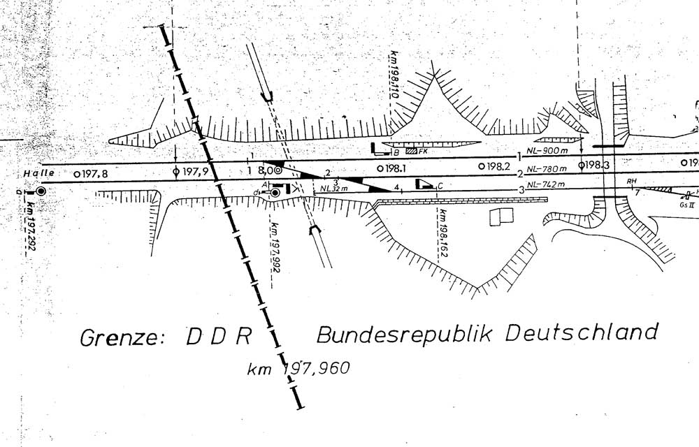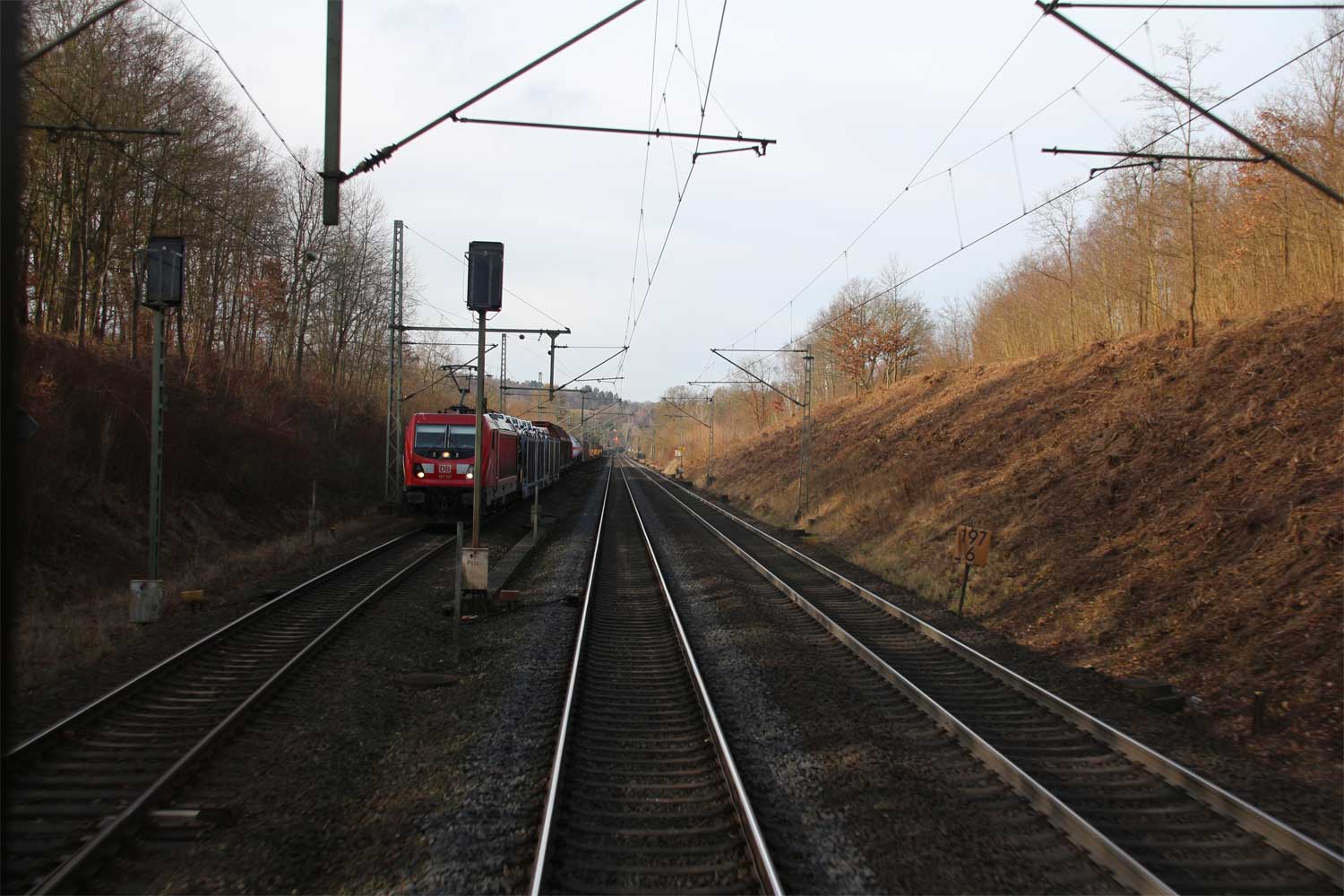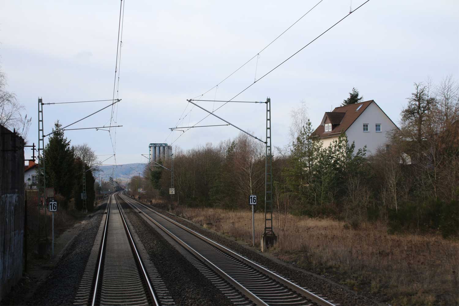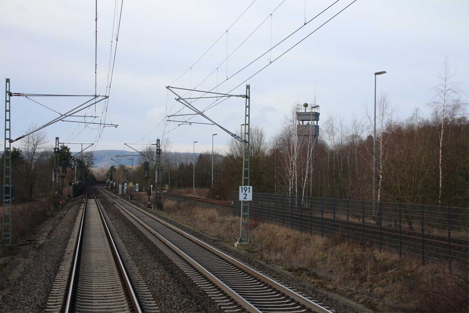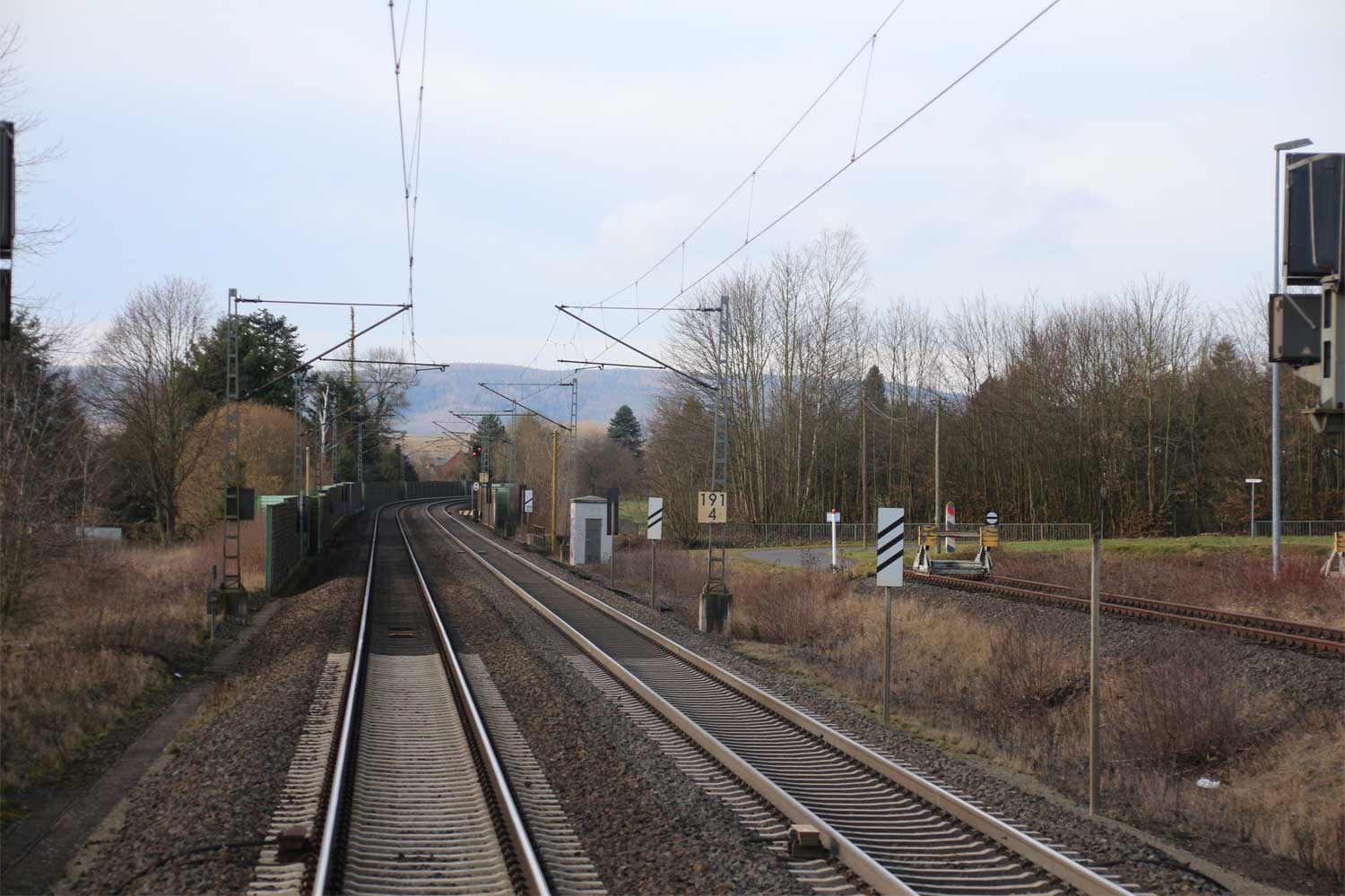 Ehemalige Grenze bei km 191,34 zwischen Gerstungen und Wildeck-Obersuhl - Blick Richtung Halle (Saale)