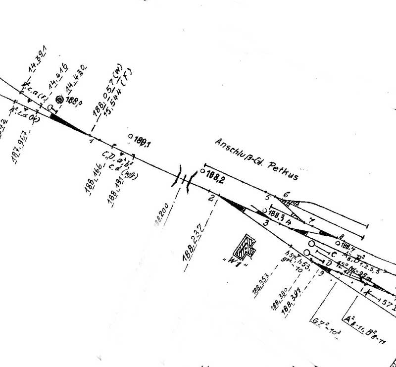 Die Angabe bei der Weiche 1 muss km 198,0 heißen.