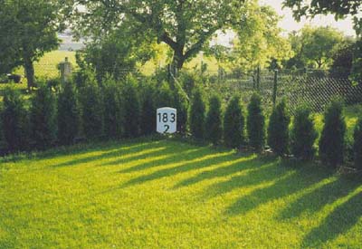 km 196,6 (Tafel) und km 196,7 (Stein) an der Bk Großensee - Blick Richtung Guntershausen