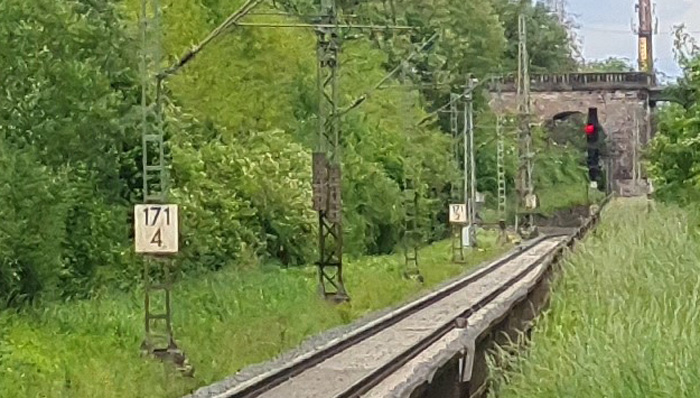 km 171,2 (Gegenrichtungsgleis) und km 171,4 (Gegenrichtungsgleis) in Eichenberg - Blick Richtung Hann Münden
