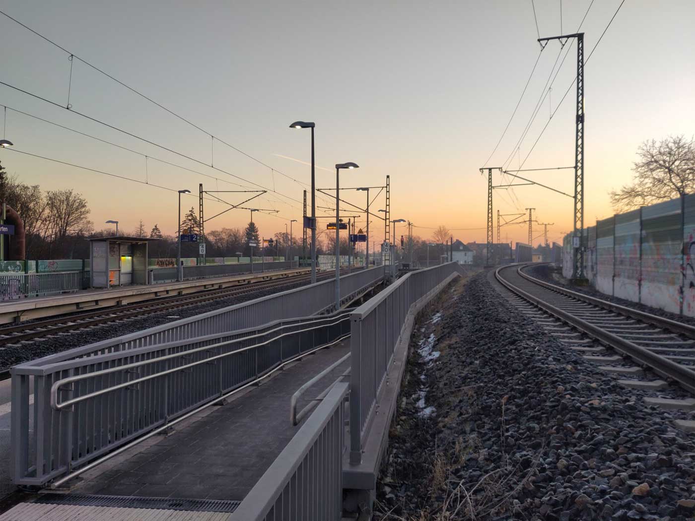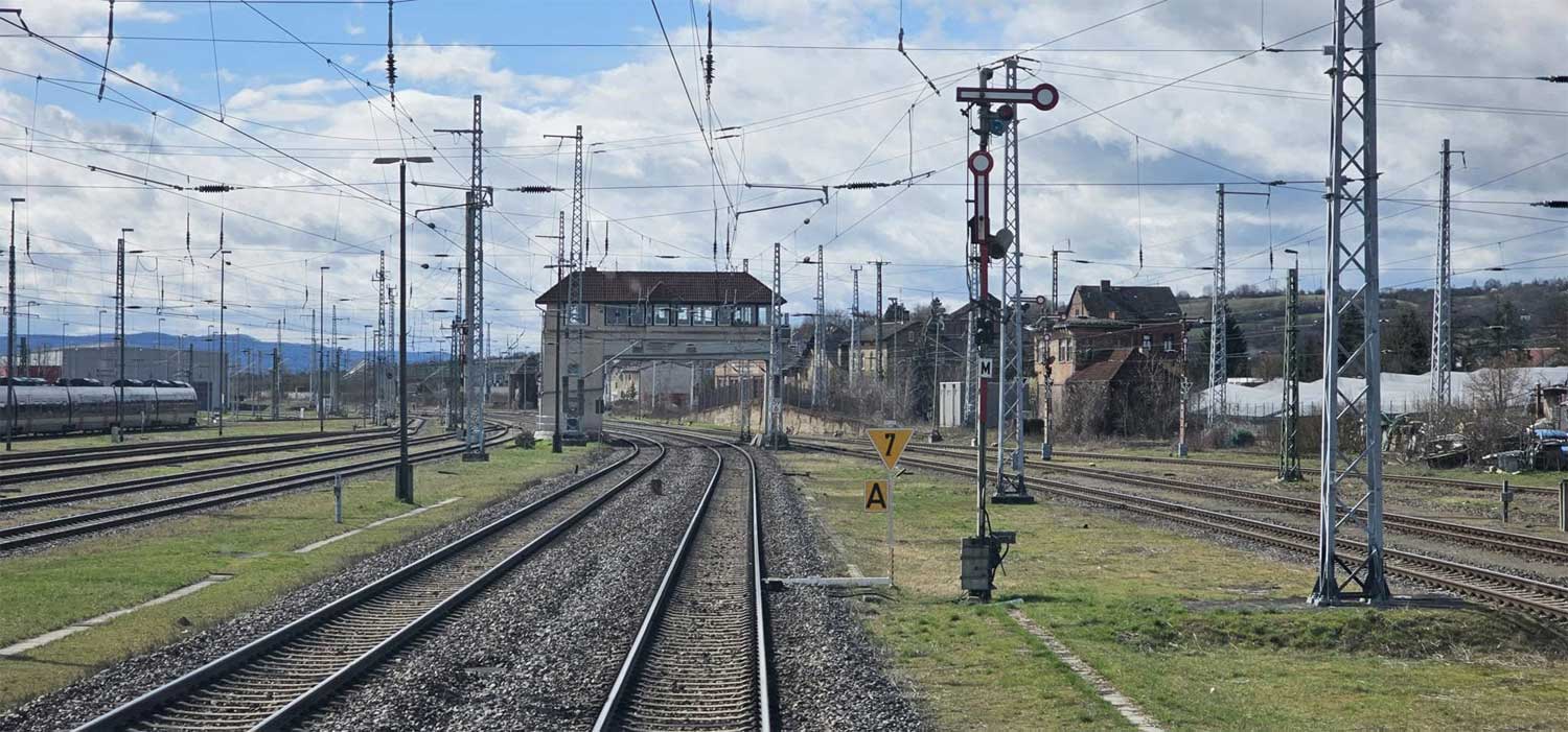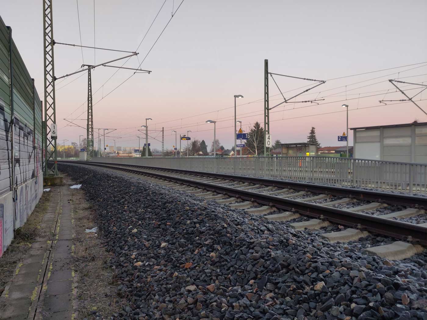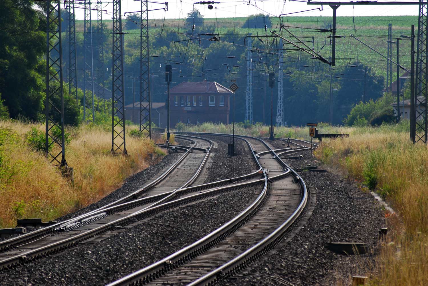 Im Hintergrund von rechts kommend das Richtungsgleis