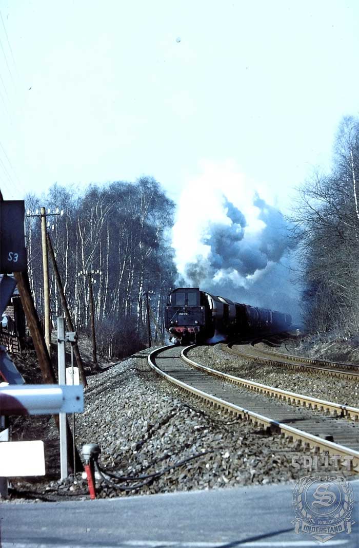 Nur ein kurzes Gastspiel gab die Baureihe 52 im Bw Nordhausen, weil nach der Abstellung der BR 44 nicht genügend Diesellok‘s zur Verfügung standen. Vorwiegend im Güterzugdienst, aber auch vor Personenzügen wurde sie eingesetzt. Im Juni 1983 ist 52 8179 bei Nordhausen Salza mit einem Pz nach Ellrich unterwegs. Am Regler stand Peter „Pollo“ Poloczek. Ihm sei dieses Foto gewidmet, viel zu früh musste er den Führerstand verlassen.
