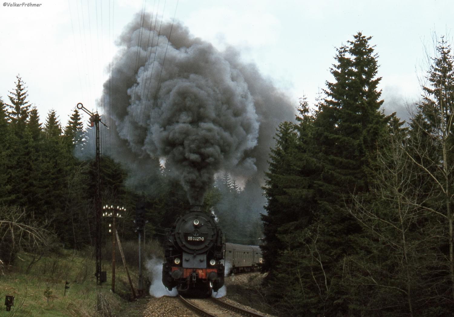 95 0040 mit sowjetischer Schneeräumeinheit SRE 41 am km 23,3 in Ernstthal am Rennsteig