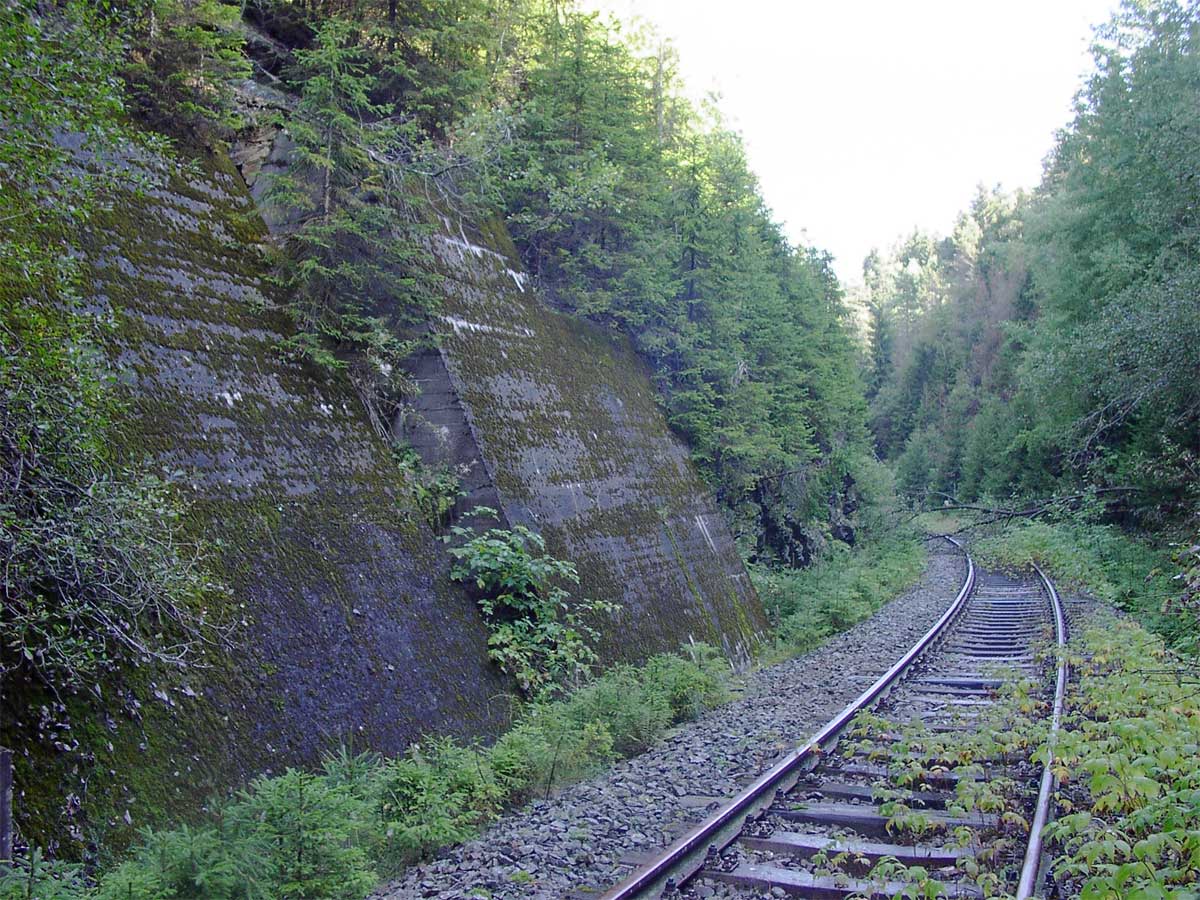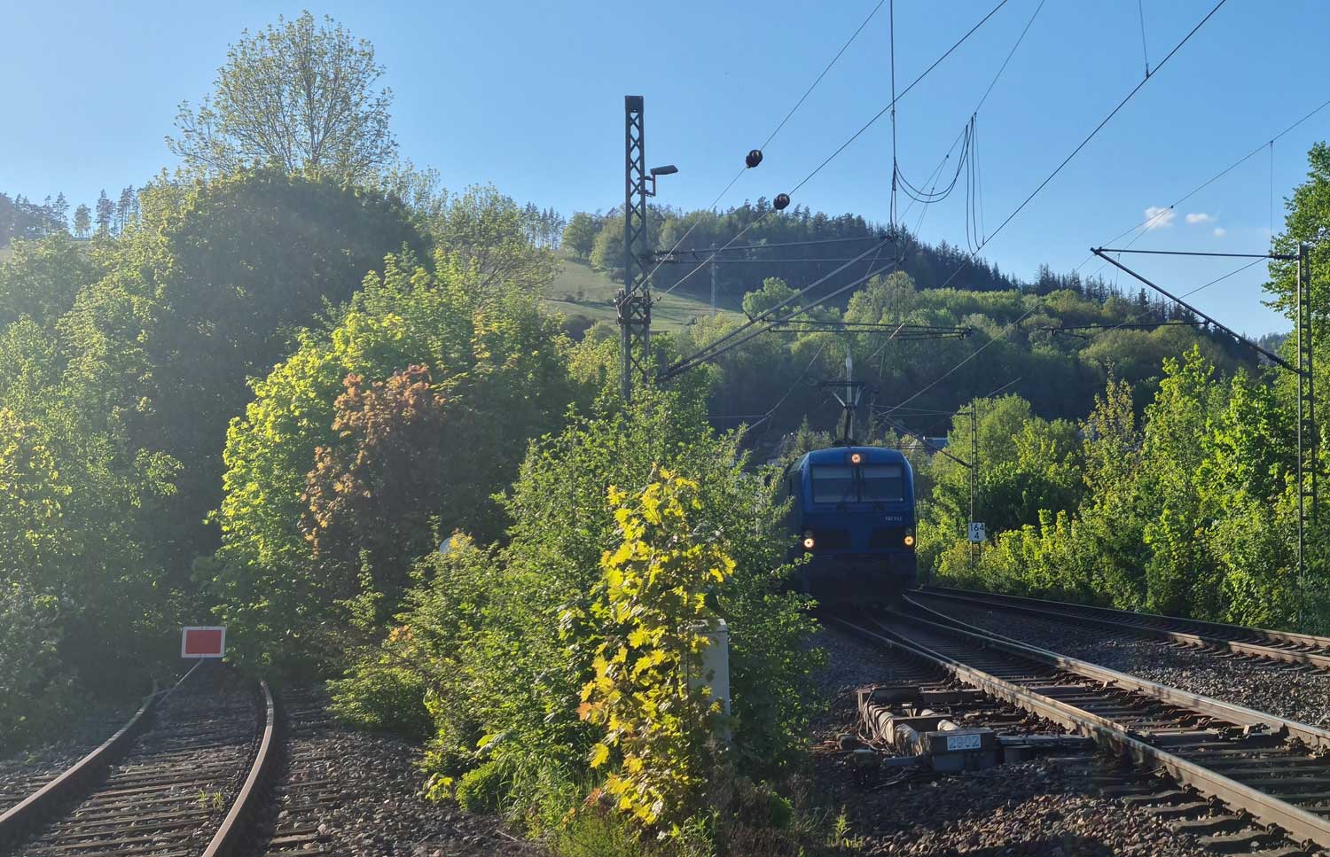 Kurz hinter dem Lippelsdorfer Tunnel sieht man am gegenüberliegenden Hang den weiteren Verlauf der Strecke.