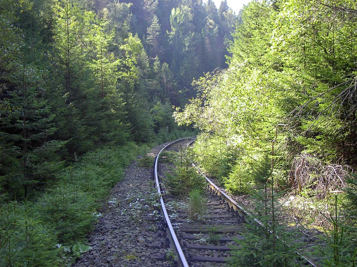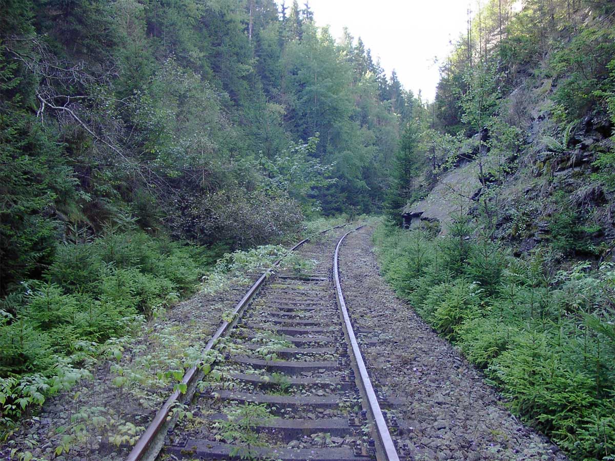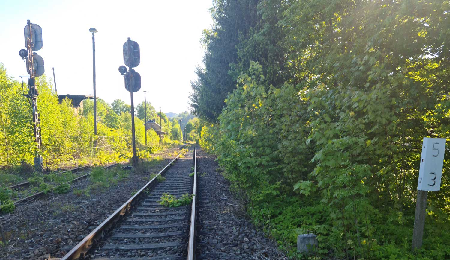 Gleis führt zum Bf Probstzella. Rechts das Gleis war die Verbindungskurve in Ri
