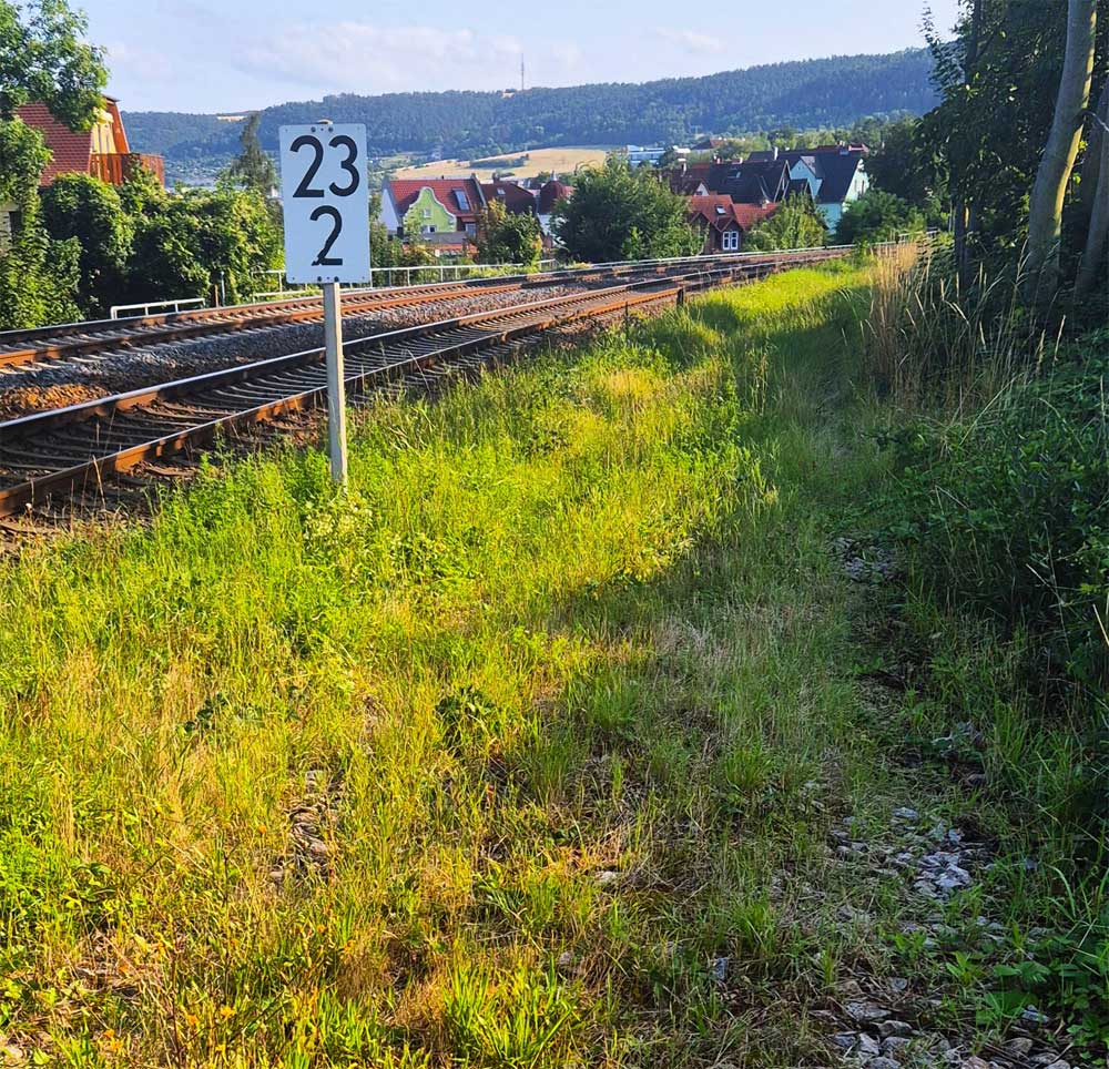 km 0,8 (Gegenrichtungsgleis) in Weimar - Blick Richtung Streckenanfang