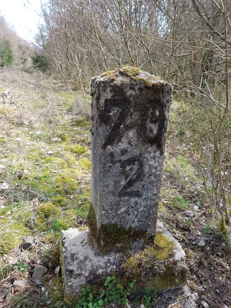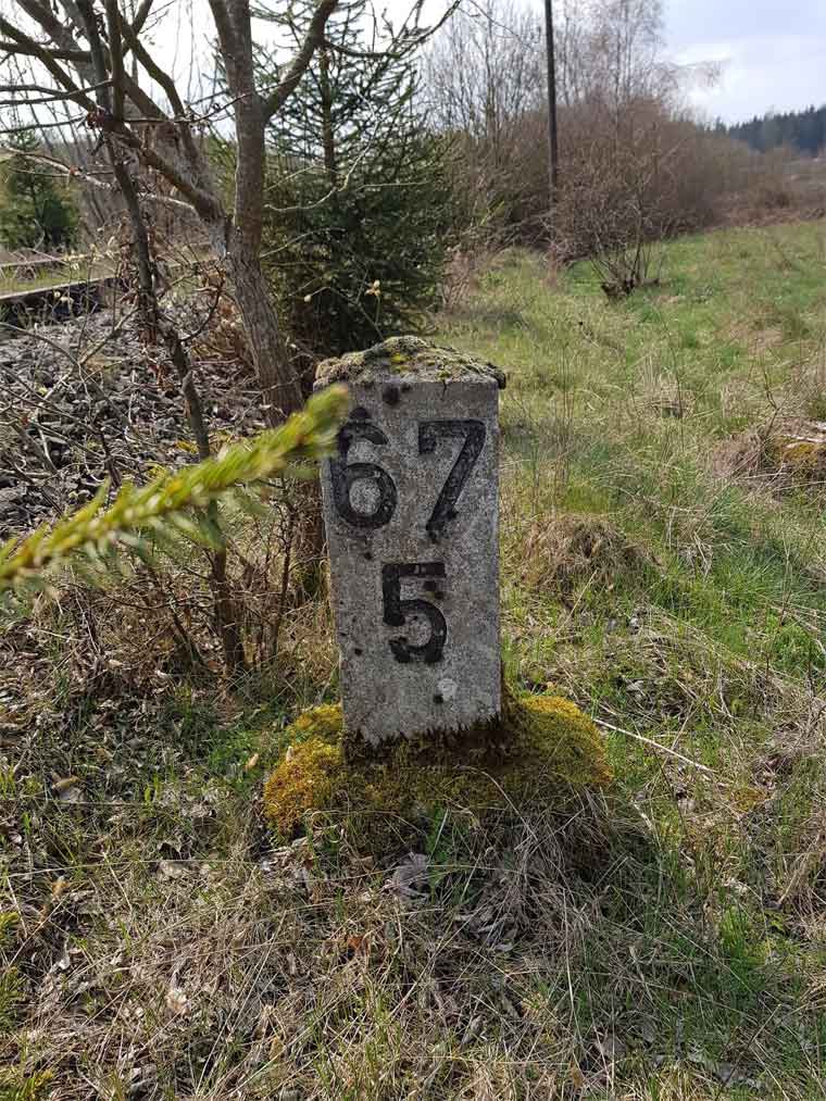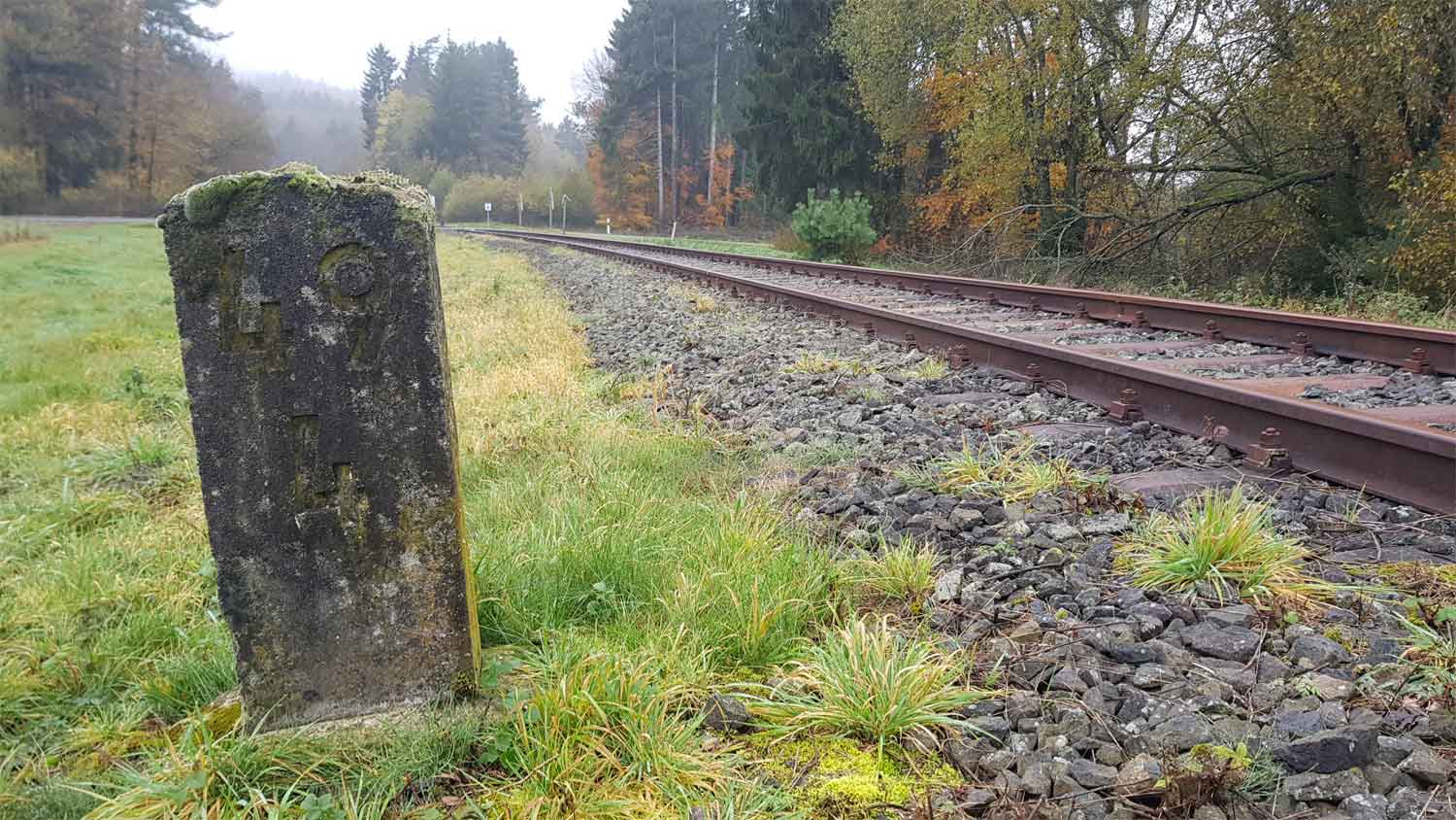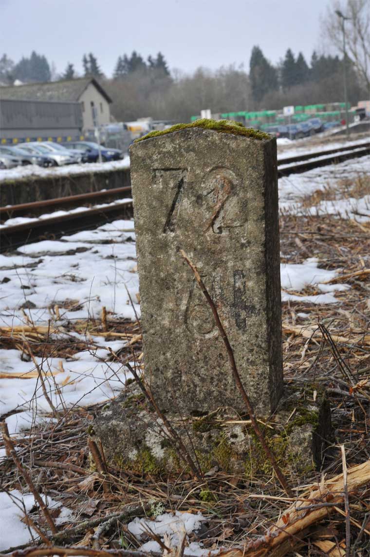 | km 0,0 der Strecke Gerolstein 0,0 - Pronsfeld 32,6 - Staatsgrenze 50,00 - (Lommersweiler 52,9 - St. Vieth 59,1) |