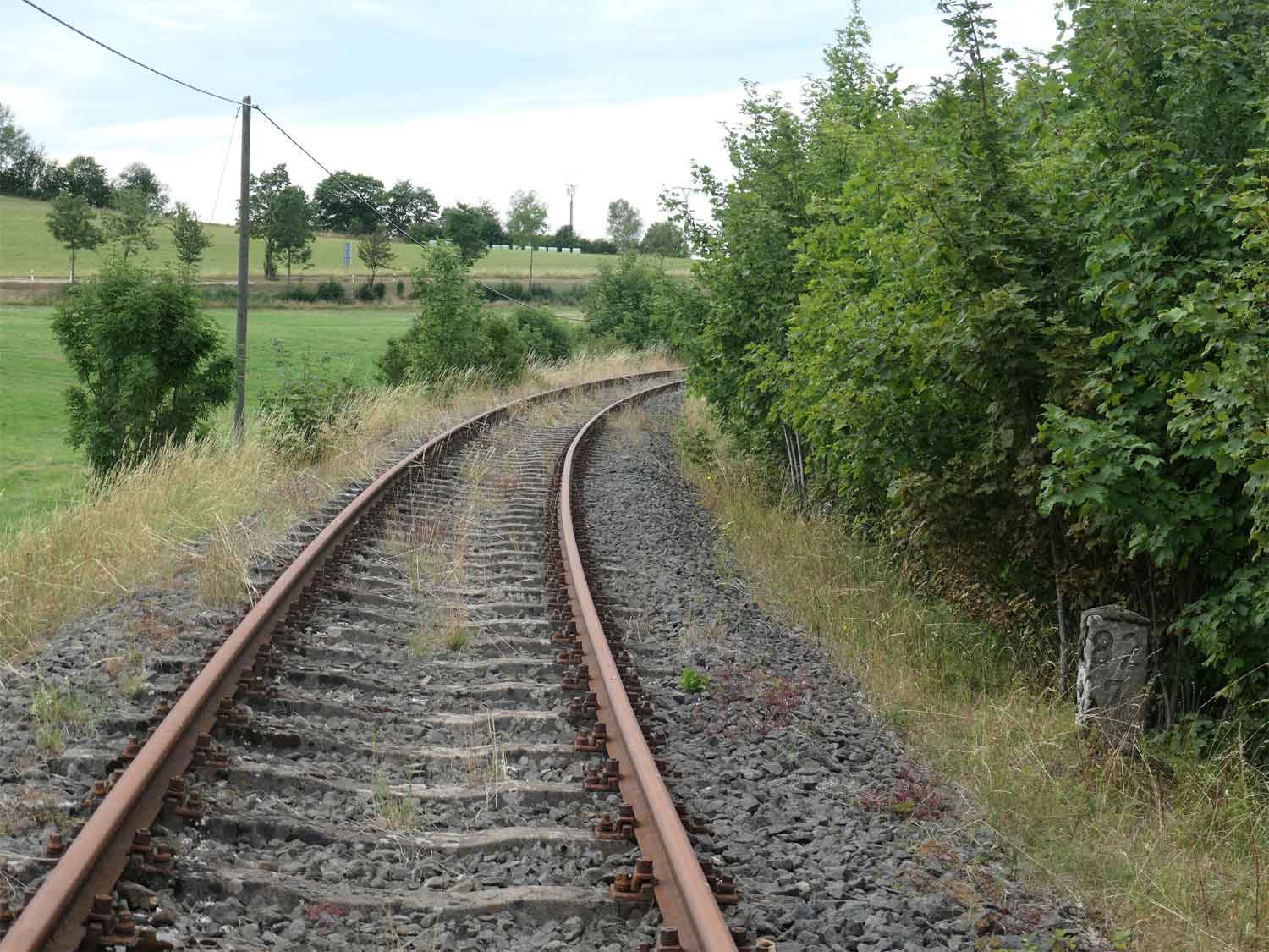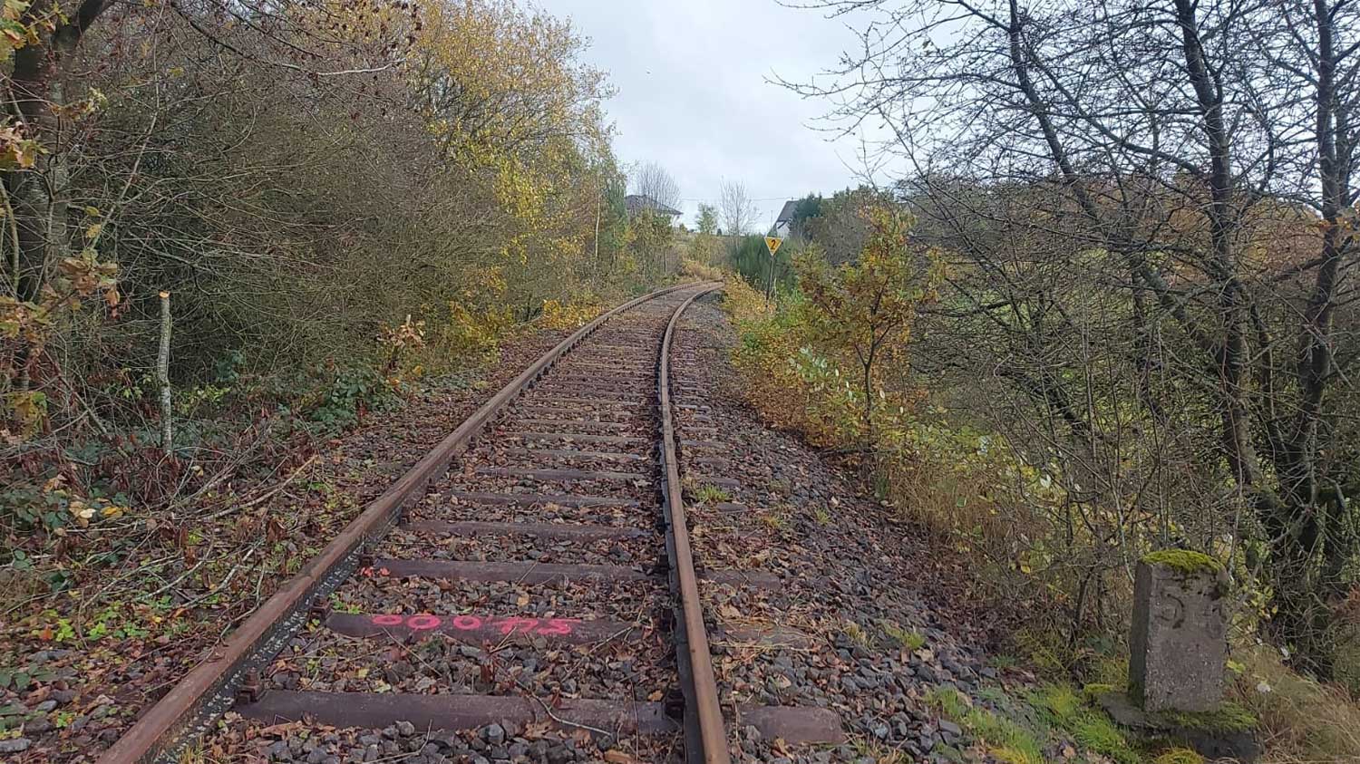 Links die beiden Streckengleise der Strecke Kalscheuren (Hürth-Kalscheuren) 0,64 - Euskirchen 30,06 - Jünkerath 82,97 - Gerolstein 101,47 - Ehrang 163,46