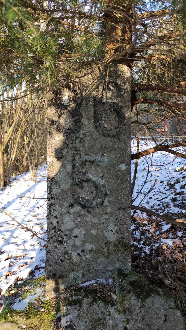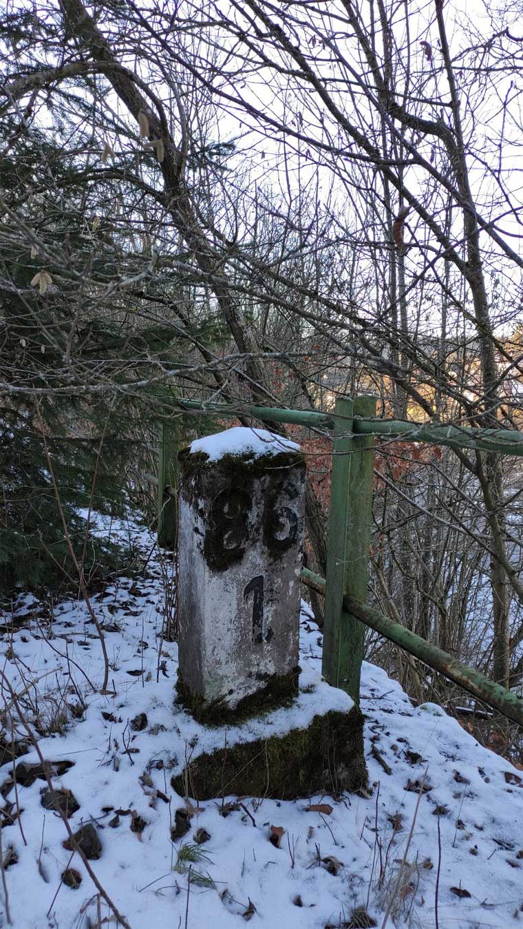 km 0,4 (Tafel und Stein) in Andernach - Blick Richtung Streckenanfang