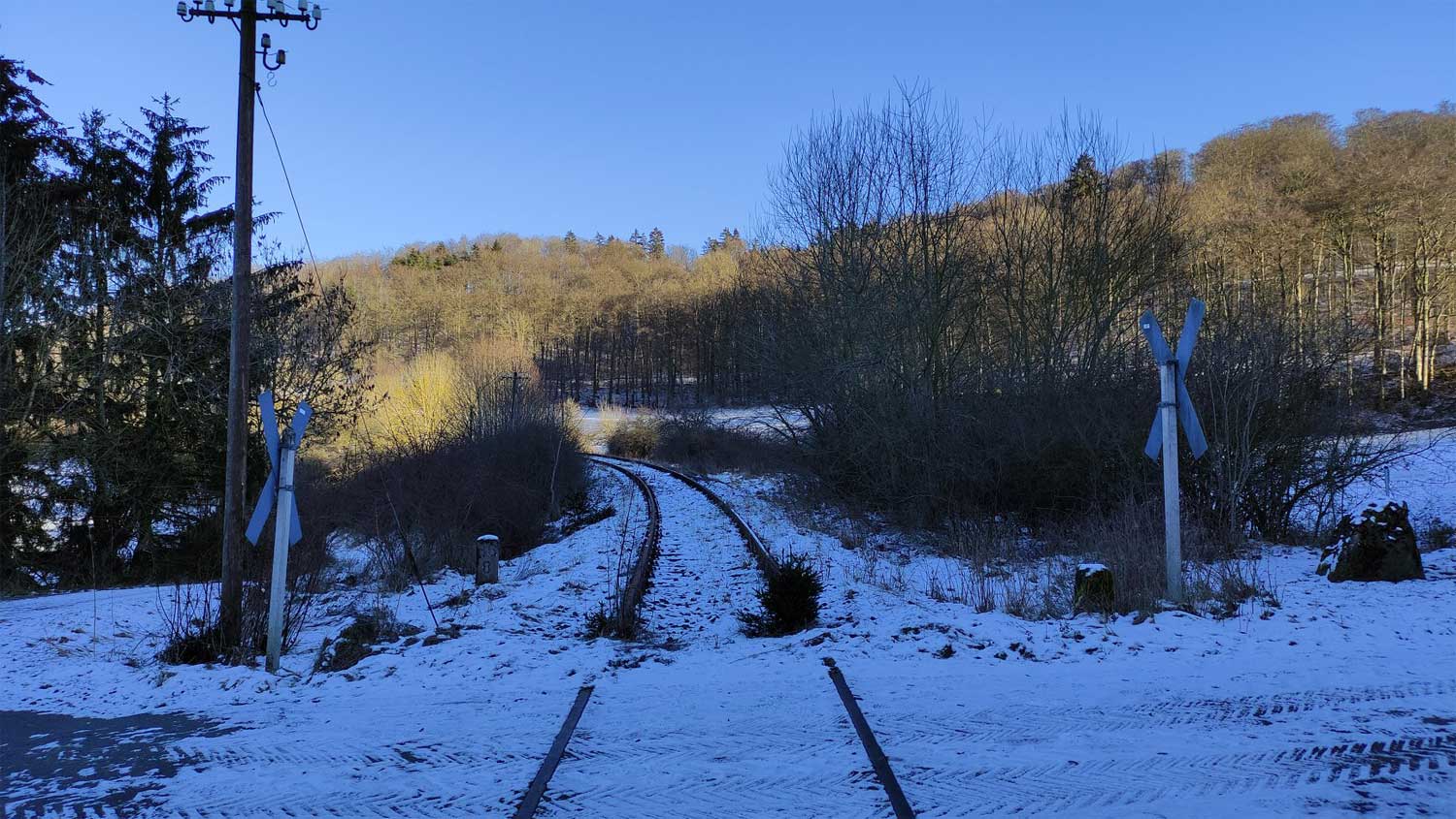 BÜ km 82,655 zwischen Dockweiler-Dreis und Hohenfels (Eifel) - Blick Richtung Gerolstein