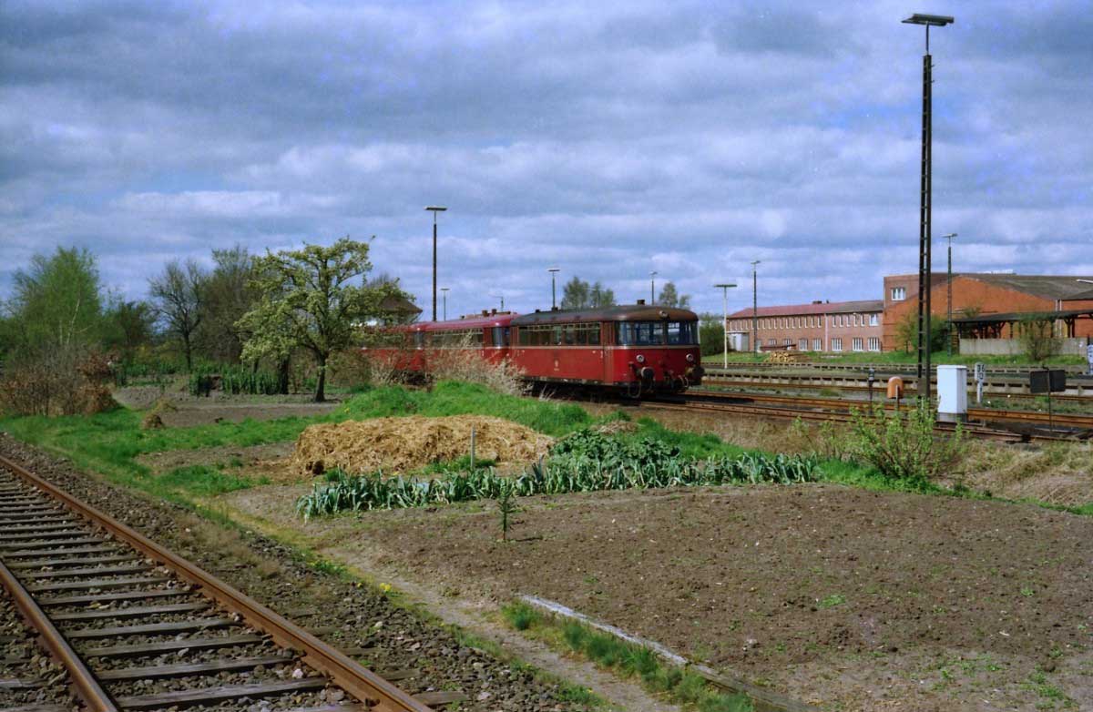 Links das Verbindungsgleis nach Harsefeld Süd zur Buxtehude-Harsefelder Eisenbahn (BHE) Buxtehude Süd 0,1 - Harsefeld Süd 14,7