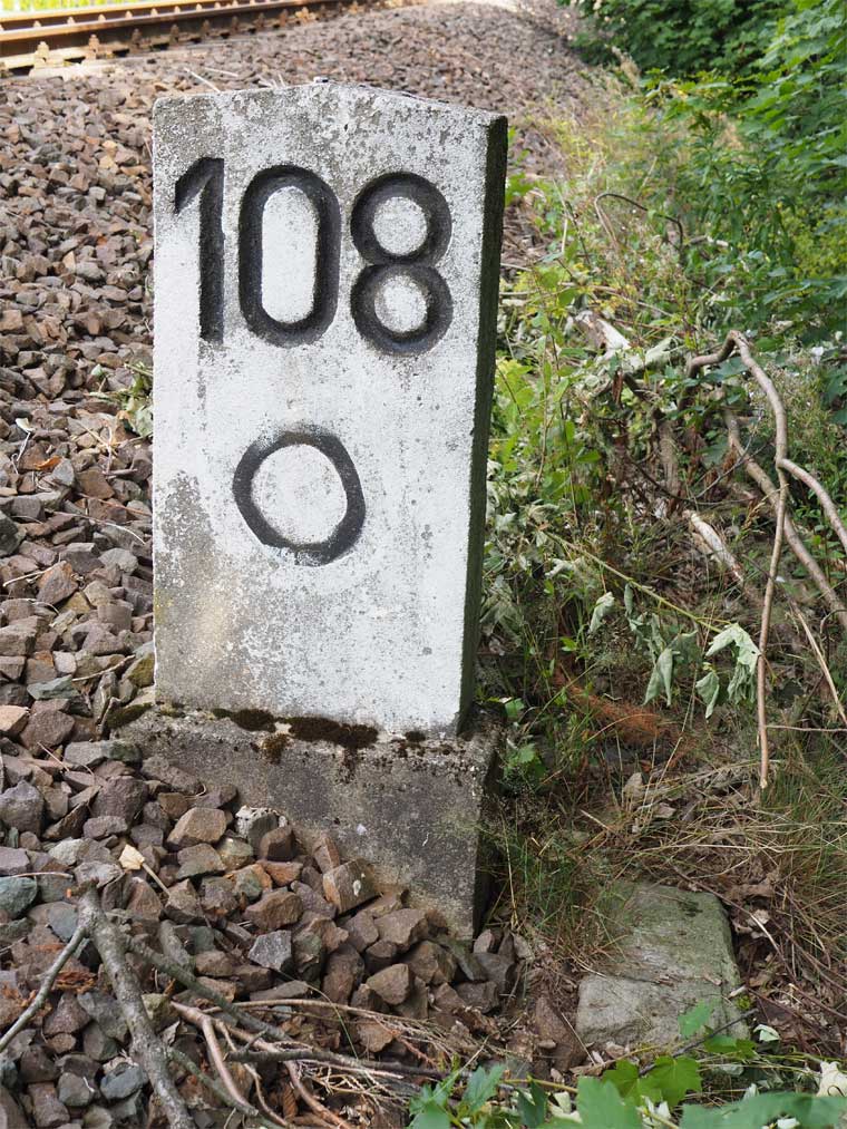 Rechts neben dem Stein ist noch der alte sächsische Hektometerstein zu erkennen. Er müsste ja die Zahl 1046 tragen.